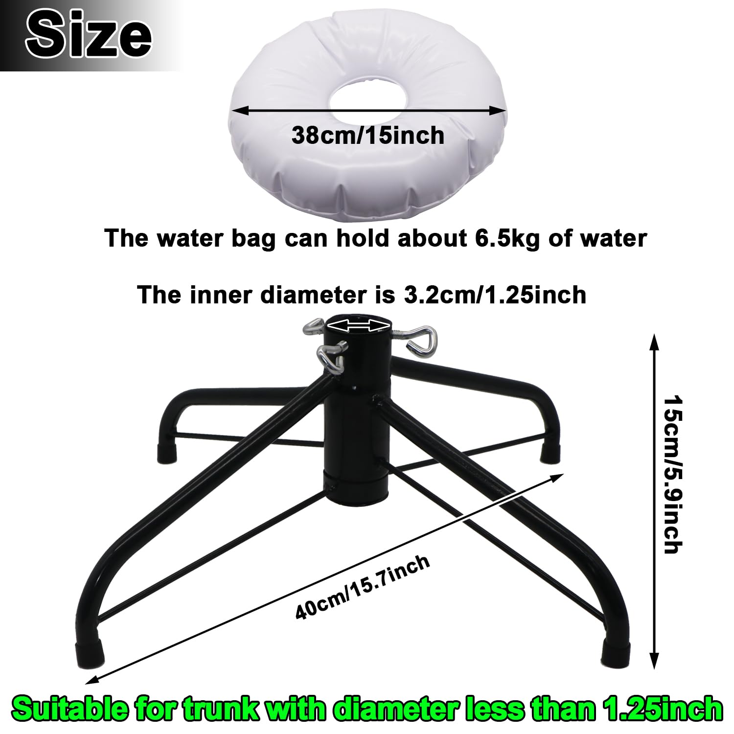 - Package includes 1 x metal Christmas tree stand、3 x screws and 1 x water bag.