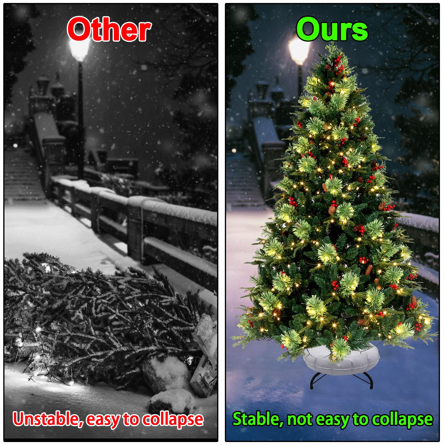 - Universal Metal Base: The Christmas Tree steel base prevents breakage and provides stability to keep your tree standing all season. And Christmas tree holder has a plastic cover on four feet to scratching the floor, suitable for put it indoor and outdoor.