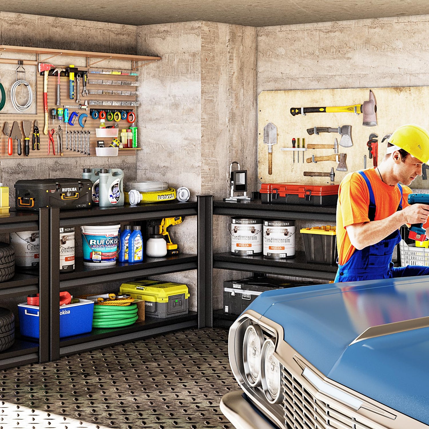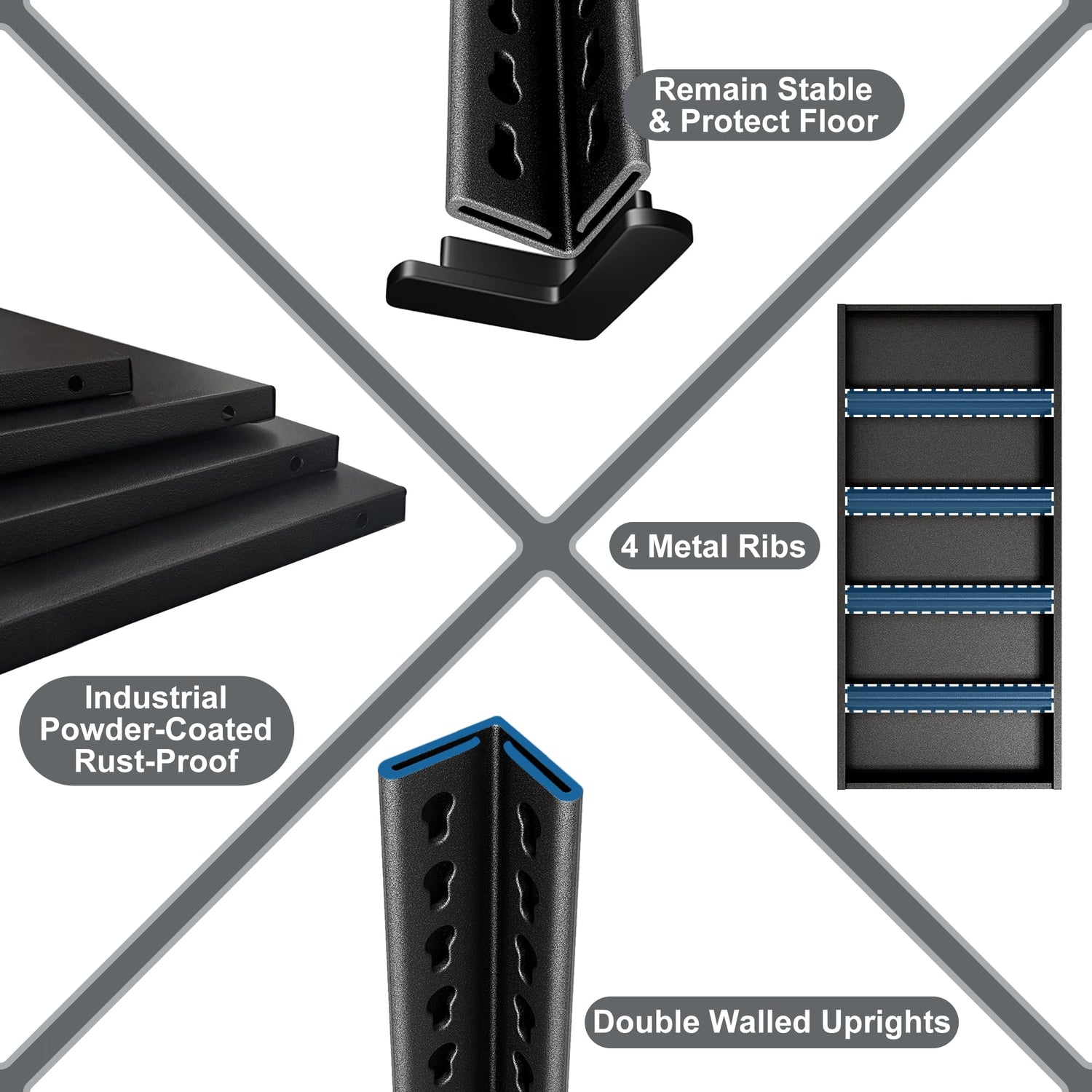 - 【Rustproof&Super Sturdy】Compared with wooden storage racks, the metal shelving with anti-rust powder coating are more reliable and rust-proof without worrying about deformation.The top / bottom caps are covered on the post to protects your floor from scratches.