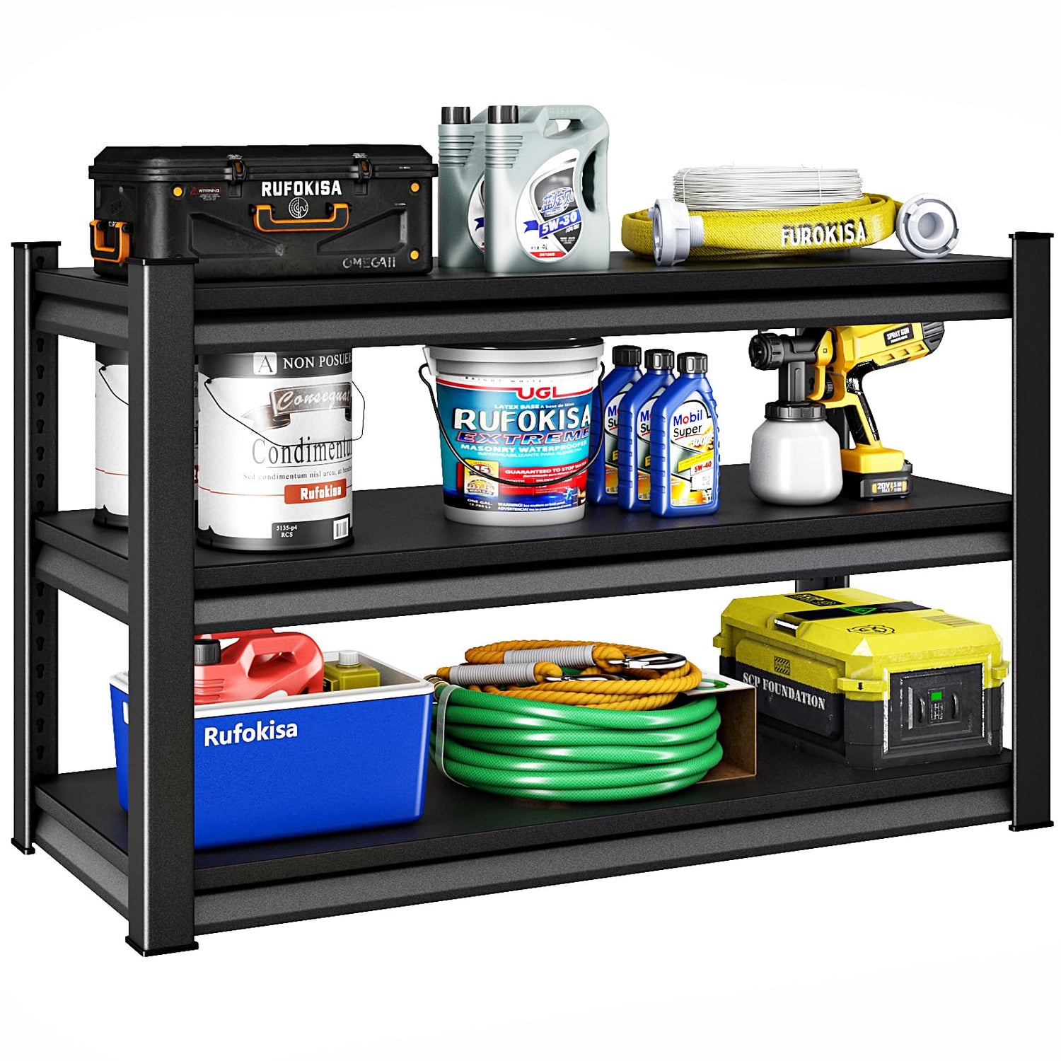 Rufokisa 48" W 3-Tier Garage Shelving Heavy Duty, 1680LBS Loads Garage Storage Shelves, Metal Shelving Units and Storage Racks, Industrial Utility Shelf Heavy Duty,48" Wx16 Dx39 H, Black