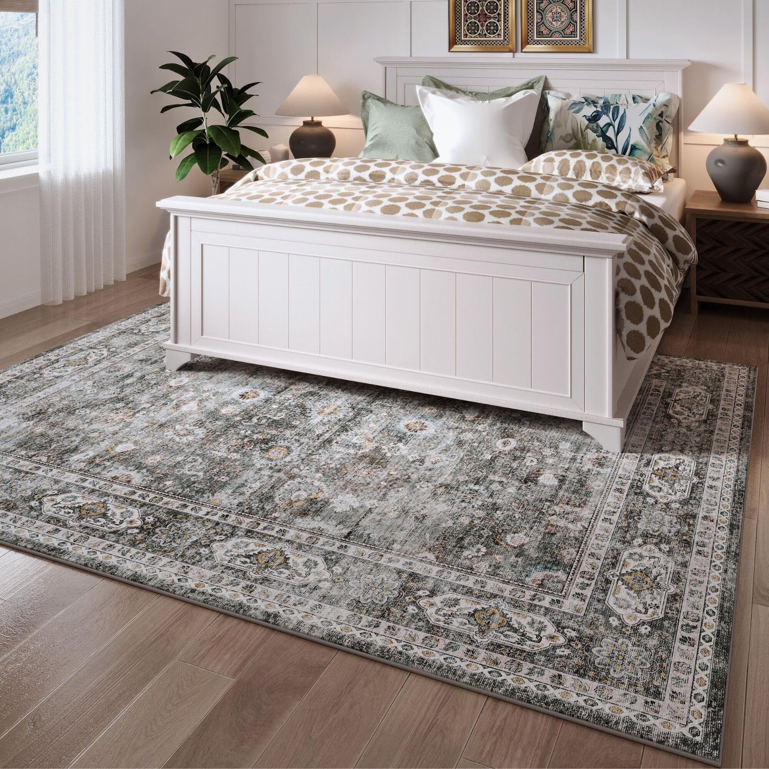 - 【Beautiful Design Boho Rug】The design is unique and trendy, the colors really pop with a beautiful floral pattern and vintage tones that perfectly blend in with your home decor. Perfect thickness makes it easy to place in entryways and under furniture without getting caught on doors. It's a good idea for this rug to anyone looking for a beautiful, durable and functional addition to your home.