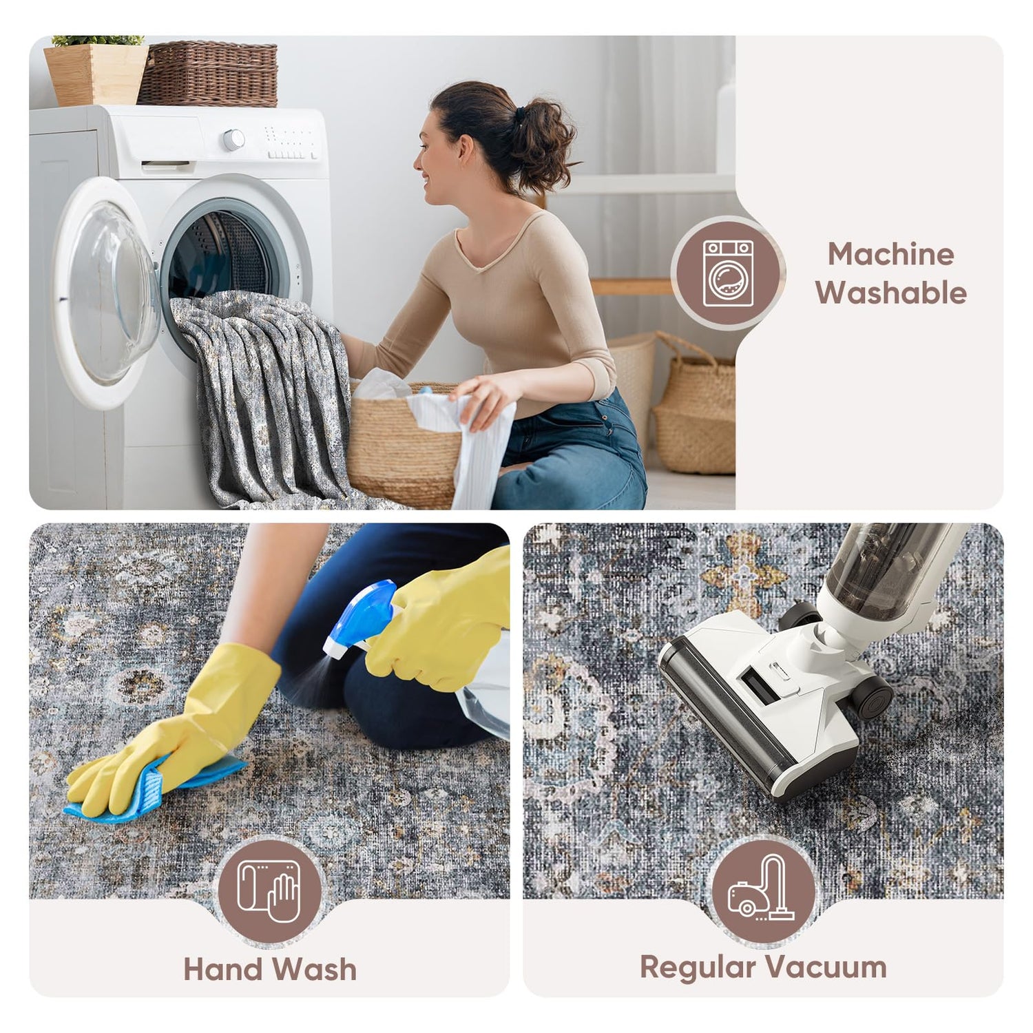 - 【Washable Rug】The added bonus of it being machine washable makes it a breeze to maintain. You no longer have to worry about spills or stains ruining your rug. Simply throw it in the washing machine. And it is also easy to vacuum.