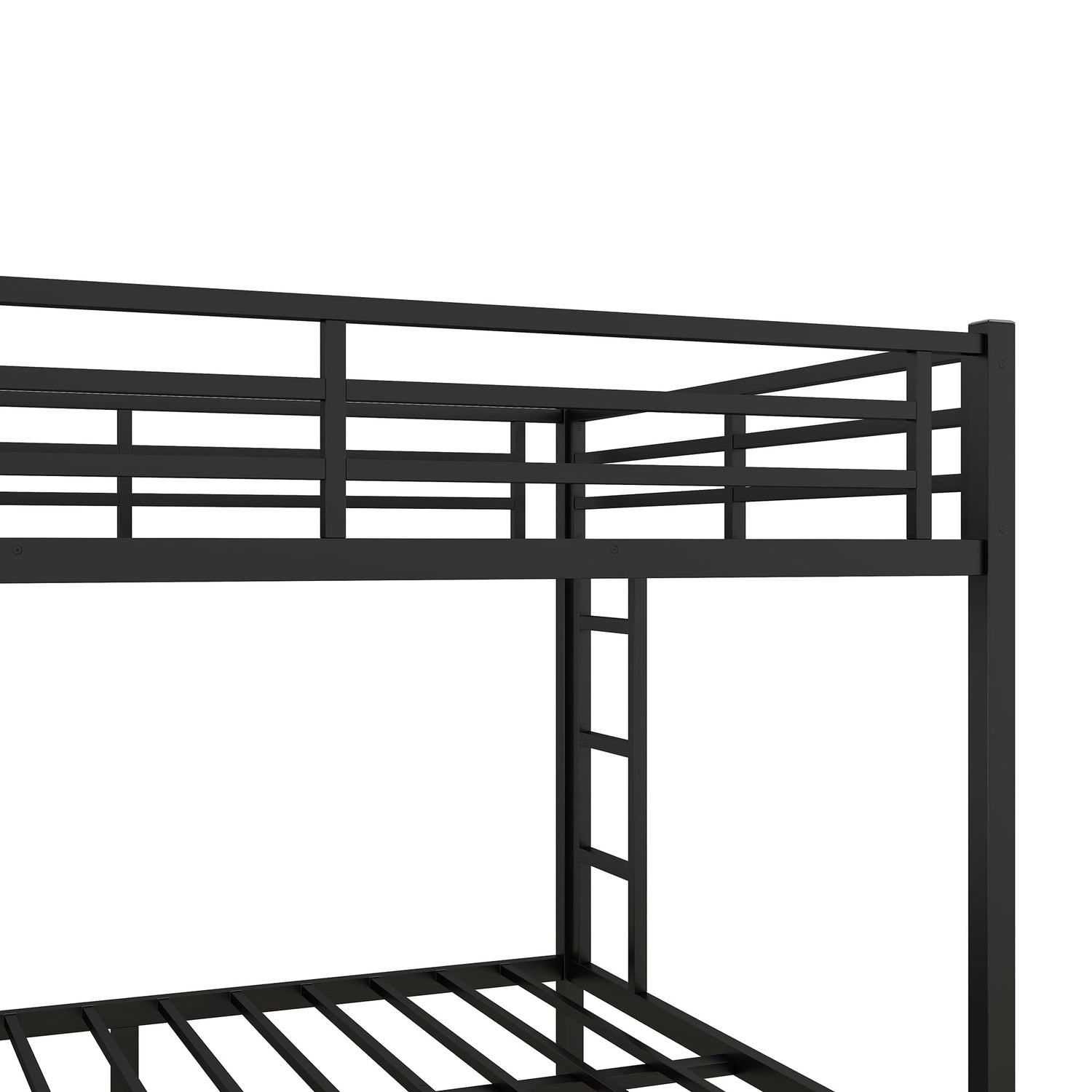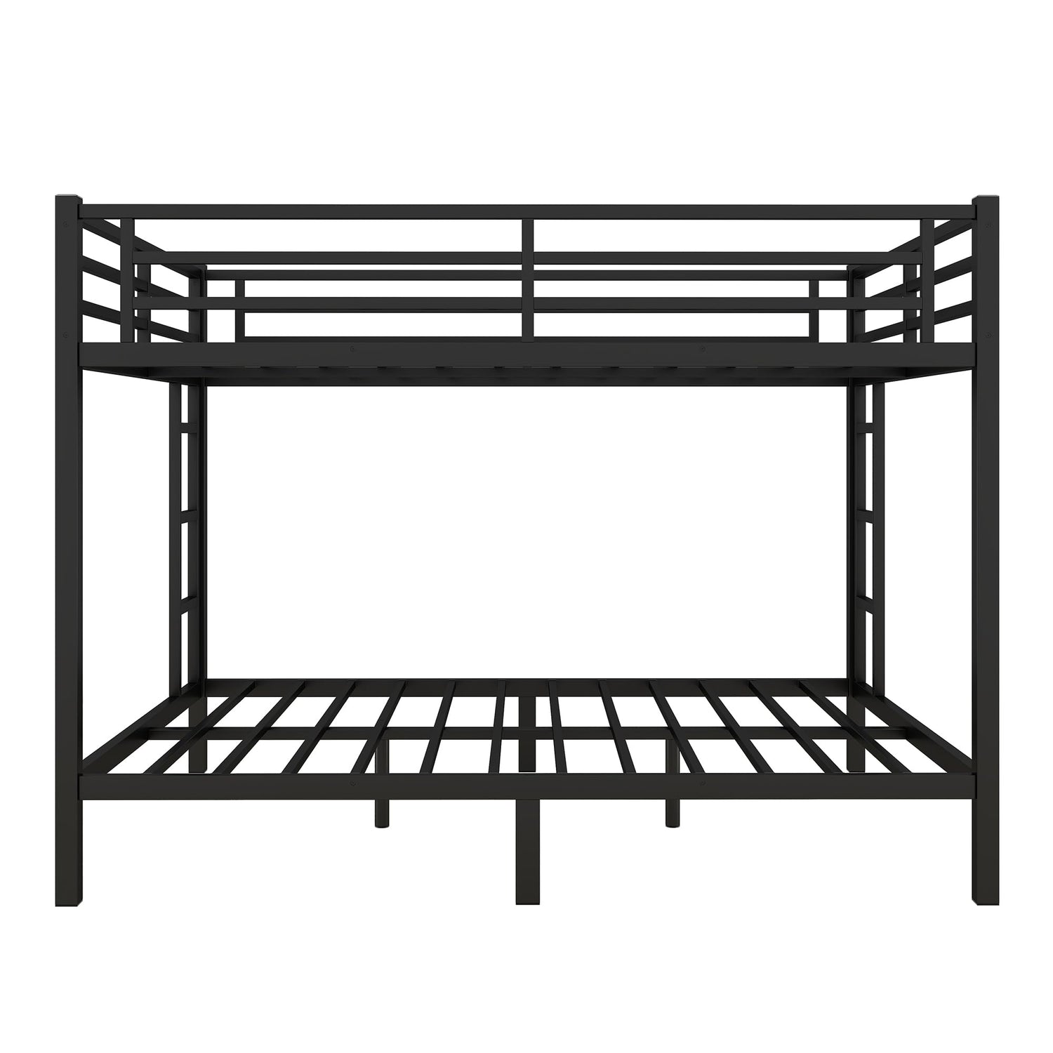 - [Space-Saving Metal Bunk Bed]: This queen over queen metal bunk bed is the perfect solution for small rooms. Equipped with high safety rails, sturdy ladders, and metal slats for support, it provides two spacious sleeping spaces for you and your family while saving space in your bedroom.