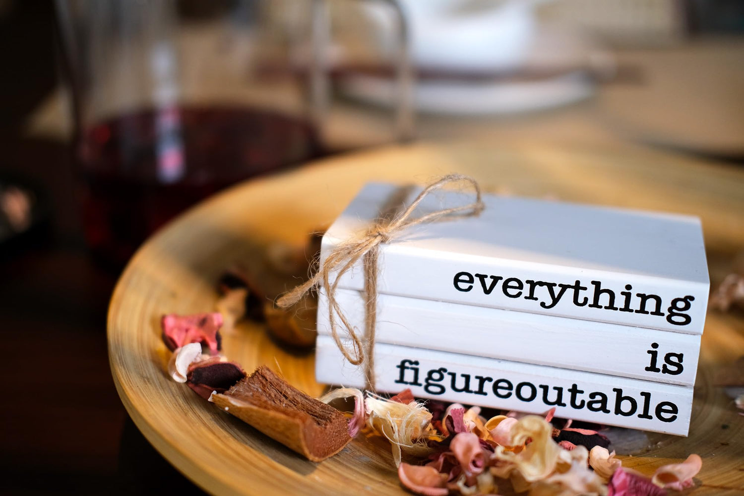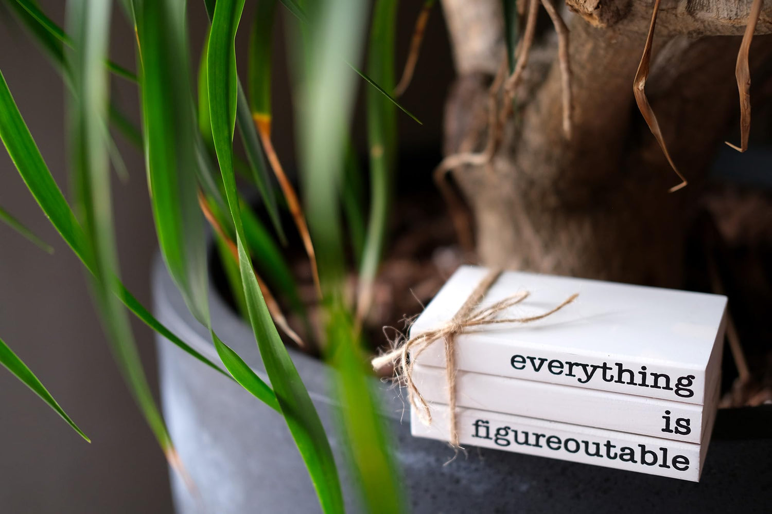 - 【Motivational Office Decor】This wooden books stack decor are made of solid wood that is eco-friendly, sturdy and durable for long lasting use. The books are printed with motivational quote "Everything is Figureoutable" for home office decor.