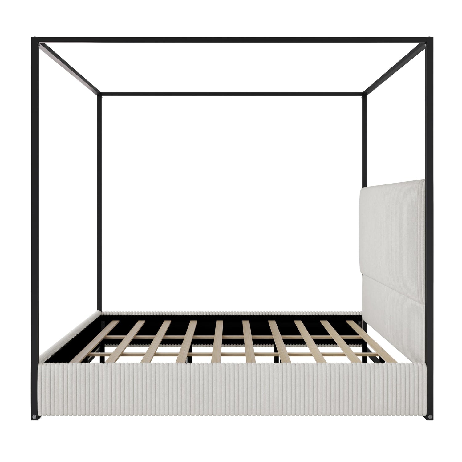 RUNNA King Size Modern Metal Canopy Bed Frame with Tall Velvet Upholstered Headboard and Four Poster,No Box Spring Needed (White,Black3)