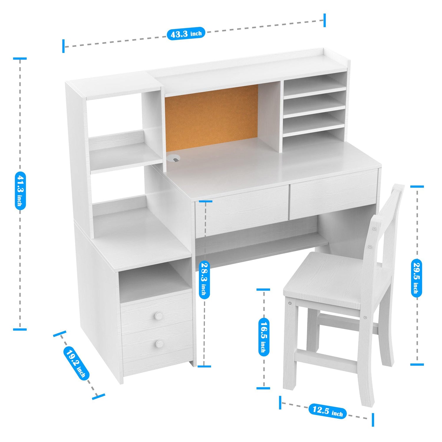 RUPOLX White Kids Desk and Chair Set for 5-12 Year Old, Childrens Computer Desk with 4 Drawers, Kids Study Table with Storage Shelf -Ck5-40