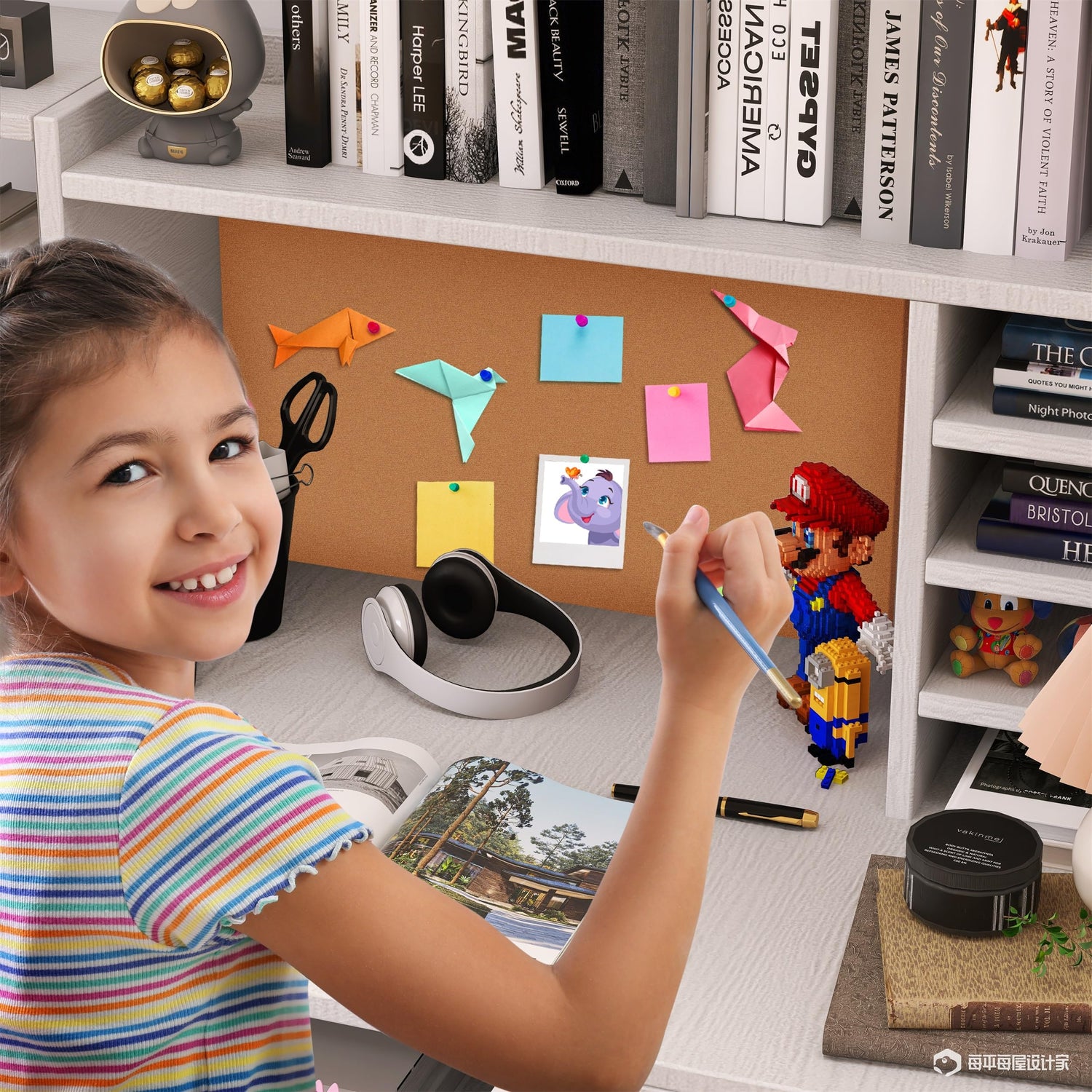 CLASSIFIED STORAGE: The large desktop is suitable for putting books or a laptop while the hutch and the open drawers provide extra storage space to keep all learning supplies in order and create a neat and personal studying environment by placing