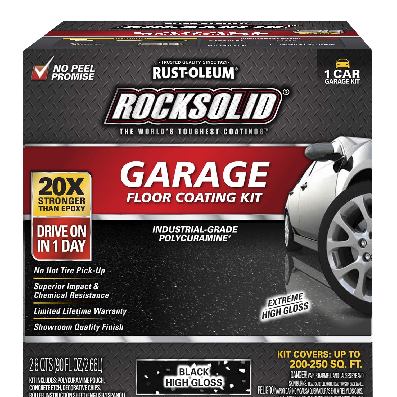 Rust-Oleum 318712 Rocksolid Polycuramine Garage Floor Coating, 1 Car Kit, Black