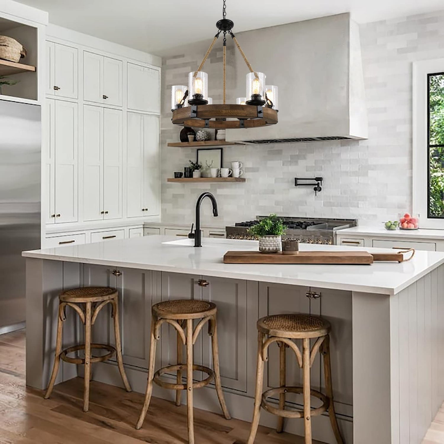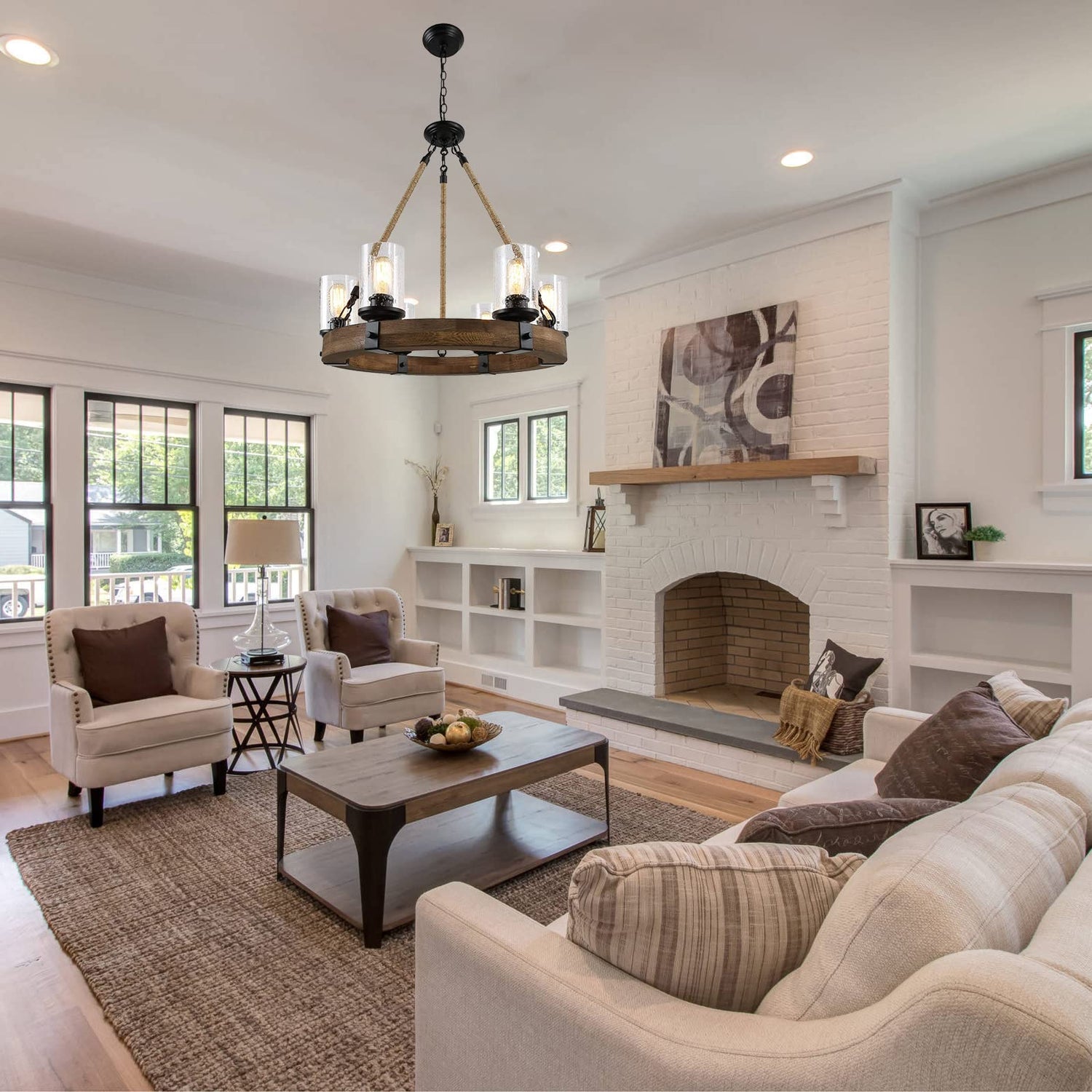 - WIDELY APPLIED: The farmhouse chandelier light fixture can skillfully pair with your space whether for dining room, kitchen island, living room, bedroom, entryway, foyer, stairway, etc. Offering a boost of brightness in any of your room, the perfect pick for offering the rustic charm of farmhouse decorate to your home.