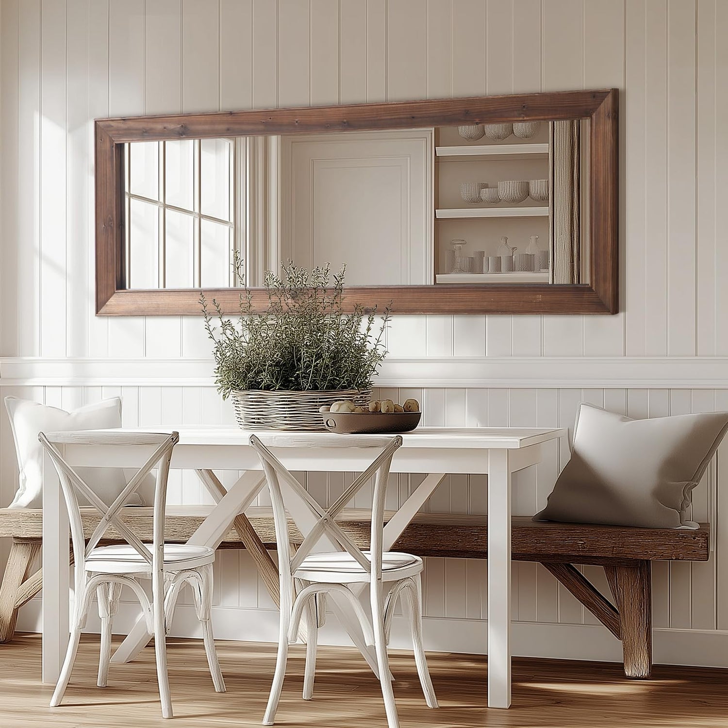 - WOODEN STANDING MIRROR FULL LENGTH: Our 64" x 21" farmhouse mirror transform your house into a charming countryside haven. Made of high-quality natural solid wood, the intricate farmhouse charm details then complement home decor, adding a touch of warmth and character to your home.
