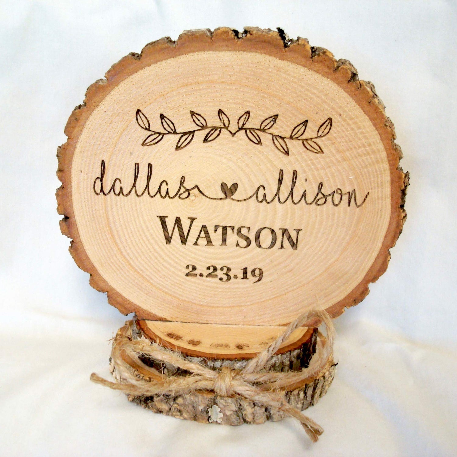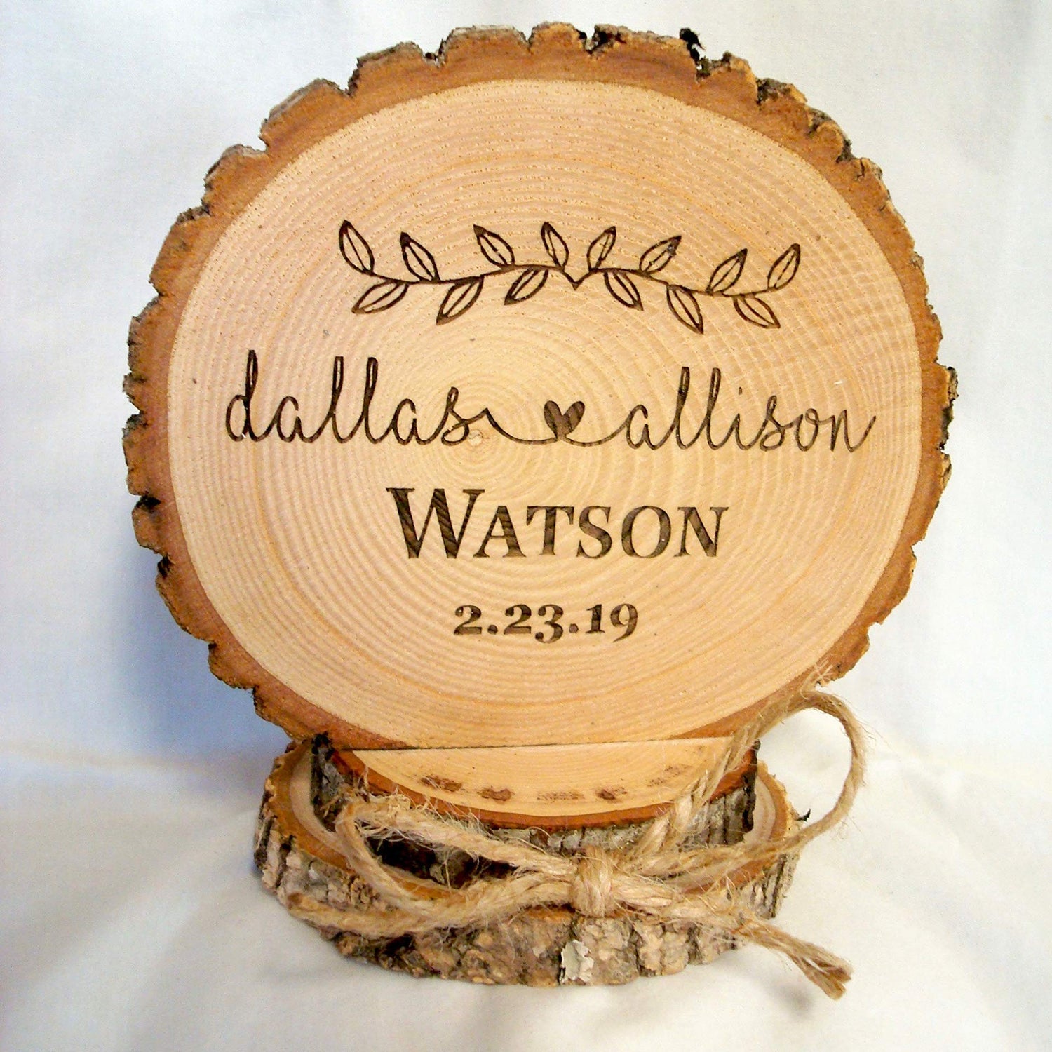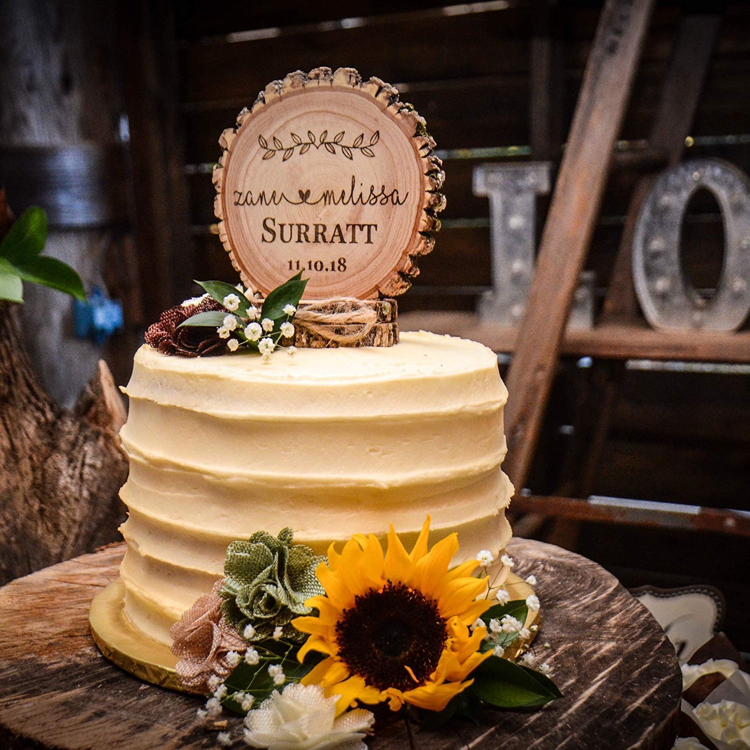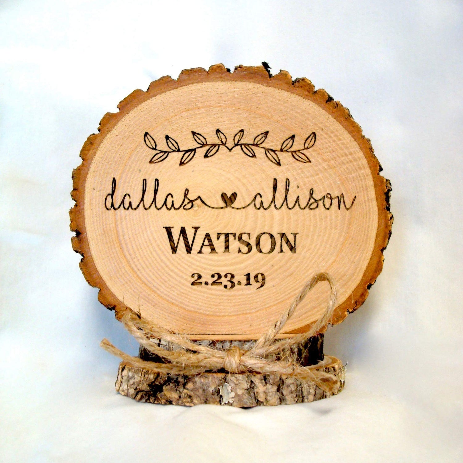 Rustic Wedding Cake Topper Handmade Wood Slices, Personalized Cake Top