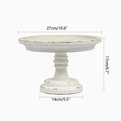 Rustic White Wood Pedestal Tray Stand for Table Decoration,Round Distressed Finished Cake Stand Dessert Table Display,Farmhouse Cake Stand Candle Holder Perfect for Weddings,Birthdays