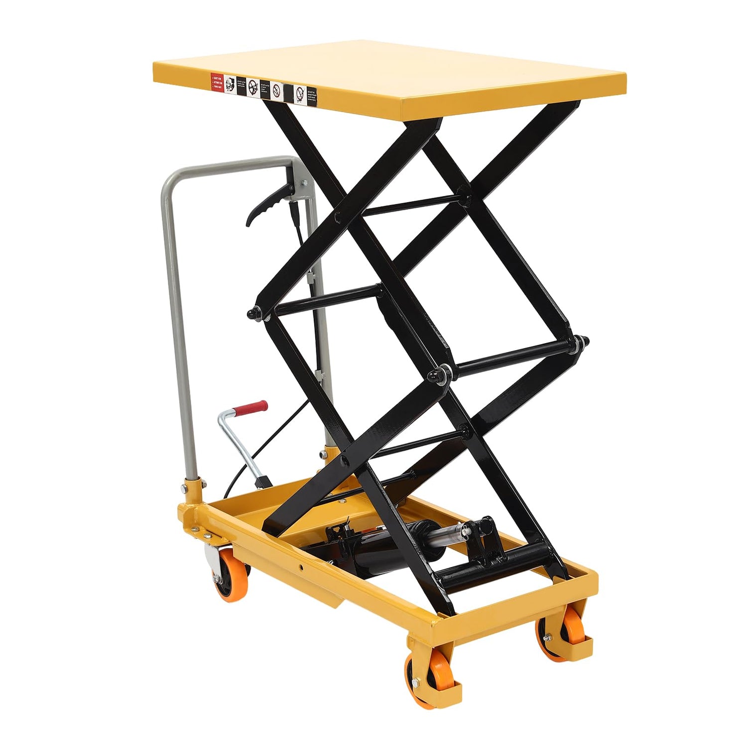 RustyVioum Hydraulic Lift Table 770lbs Capacity Double Scissor Lift Table with 4 Wheels Manual Hydraulic Table Cart Hydraulic Material Lift Pallet Truck for Factories, Warehouses Supermarkets