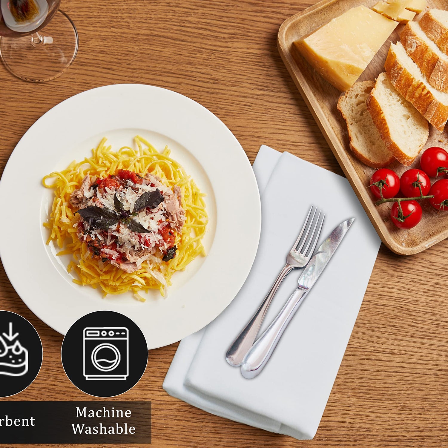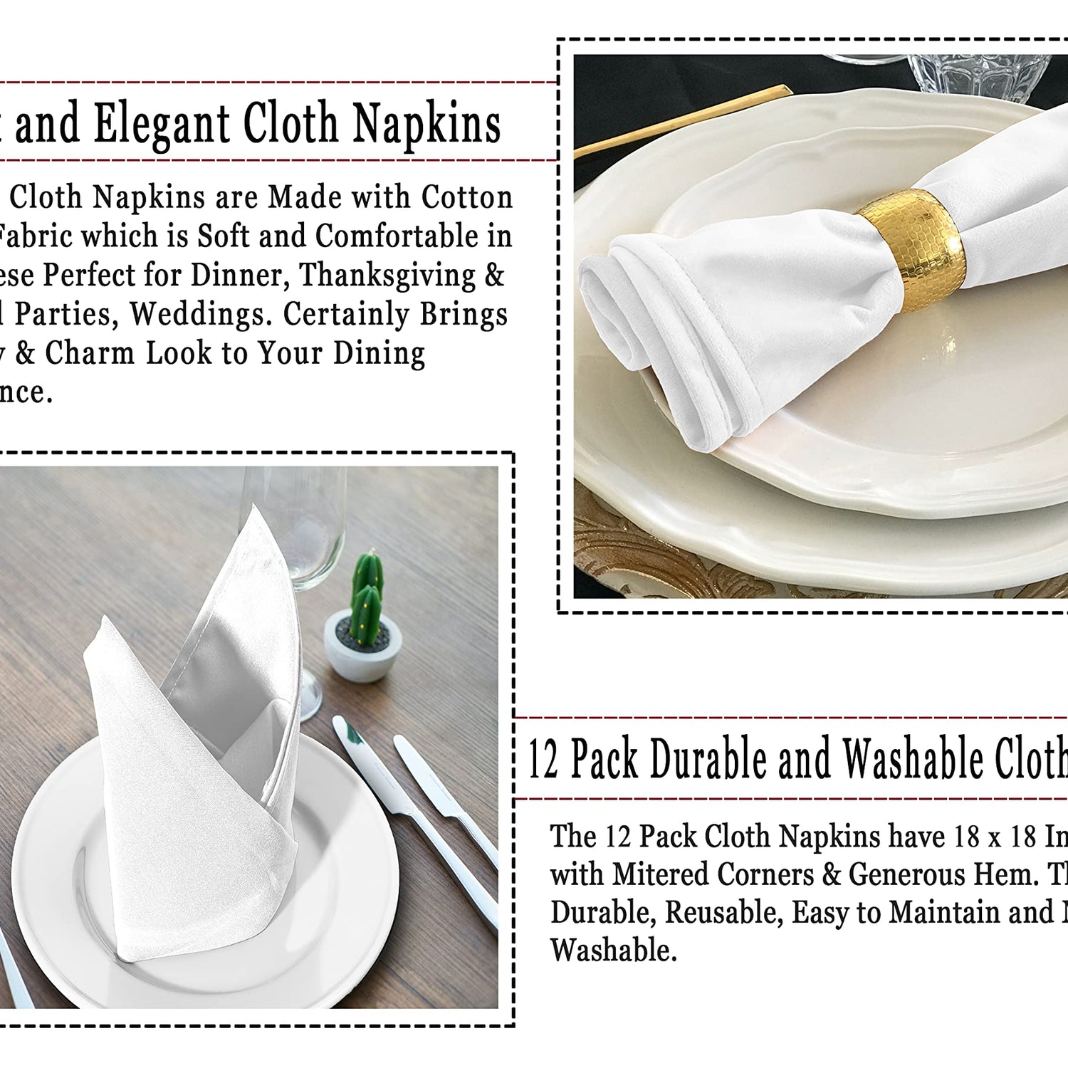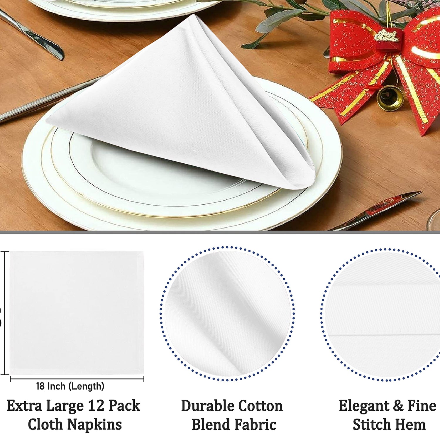 Ruvanti Cloth Napkins set of 12, 18x18 Inches Napkins Cloth Washable, Soft, Durable, Absorbent, Cotton Blend. Table Dinner Napkins Cloth for Hotel, Lunch, Restaurant, Weddings, Events, Parties - White
