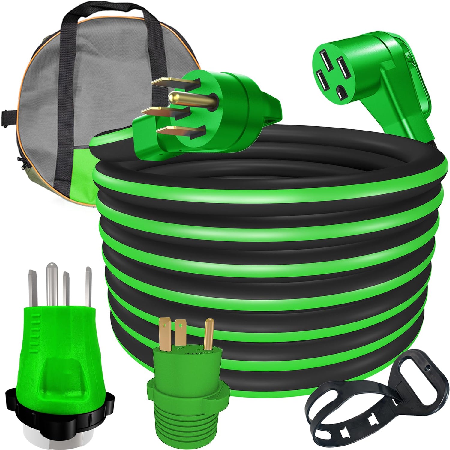 - 【Free Electrical Accessories】 Comes with a free 14-50P /SS2-50R adapter, when used with a 25FT power cord, it will function as a 25FT 14-50P /SS2-50R power cord. And with a free 30M/50F connector for you when RV has 50 AMP power and needs to plug into a 30 AMP power source. We choose these accessories based on real life scenarios, and they will help you solve the trouble you encounter and make your trip easier.