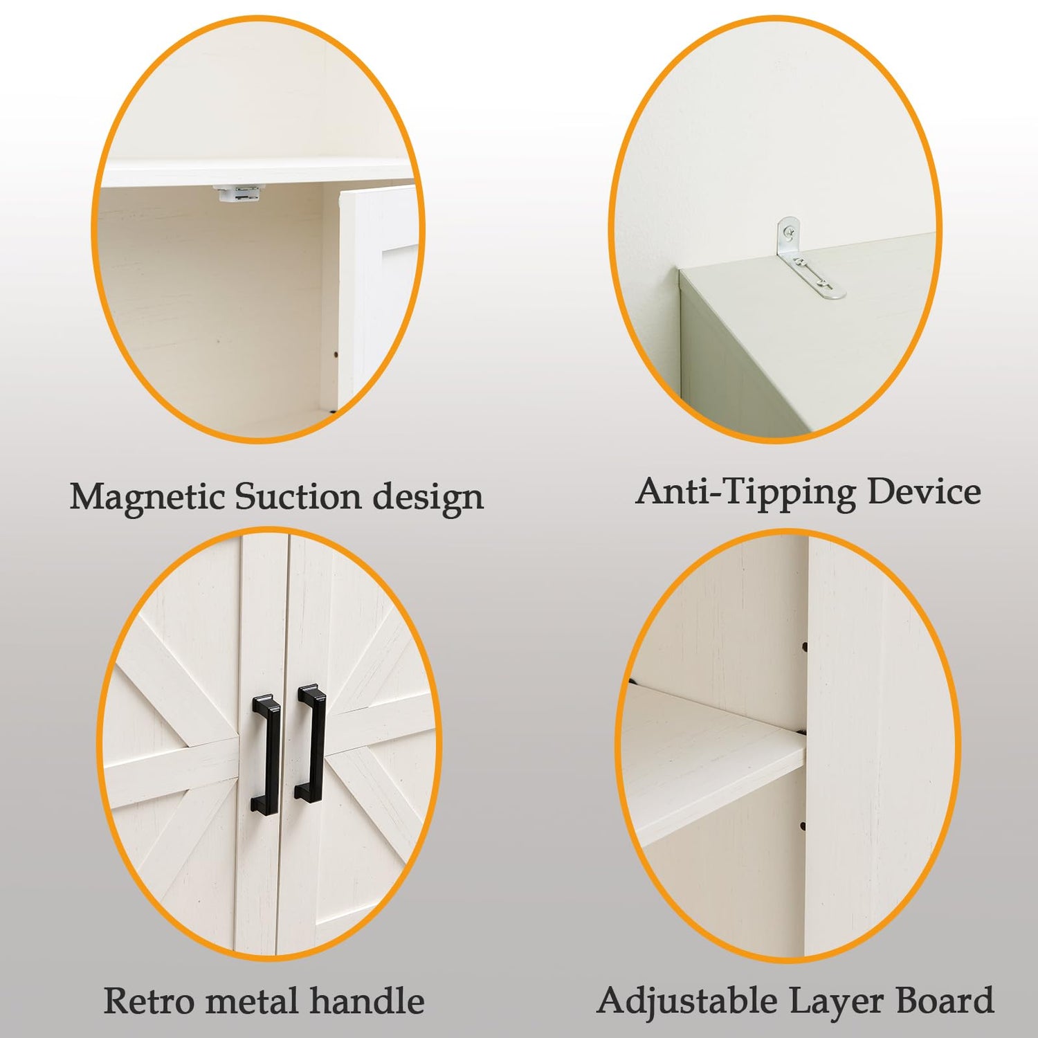- [FARMHOUSE STYLE DESIGN]Wooden bookshelves with unique barn doors and farmhouse woodgrain finishes add a touch of rustic charm and cosy nature to your space. Metal door handles add a stylish touch to the storage cabinet. The barn door design also makes the farmhouse book shelf door more sturdy and stable.