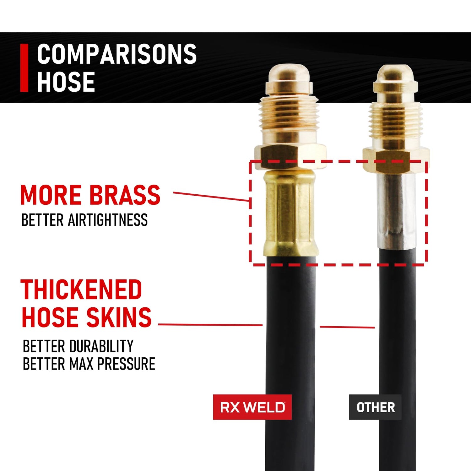 - Package Includes:1 x Argon Regulator, 1 x 6.6Ft Hose, 1 x Hose Clamp and Mounting Nut. RX WELD has more complete accessories so you can use it with confidence