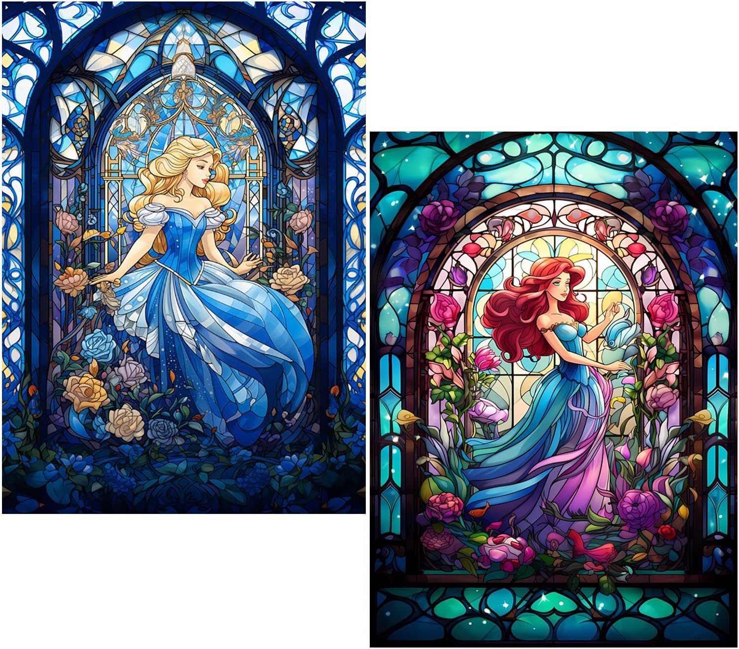 RYMILIE Diamond Painting Kits for Adults - 2 Pack Princess DIY 5D Diamond Art Kits Full Drill Diamond Dots Paintings with Diamonds Gem Art and Crafts Home Decor 12x16inch