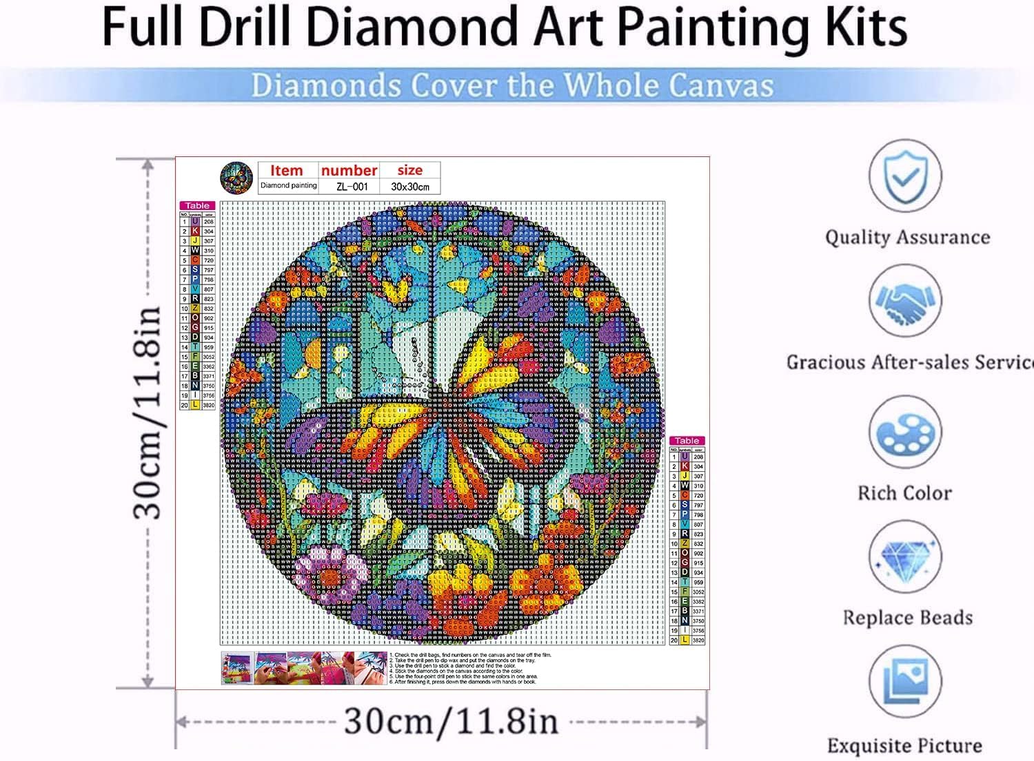 - Diamond Painting Kits:Each kits contains all diamond painting accessories. Including 1×high definition painting canvas; color coded rhinestones; 1×point diamond pen; 1×craft tray; 1×clay; 5×self-sealing bags. Note: The frame is not included. Don’t worry about the lack of diamonds. Add 30 percent to each color of diamond