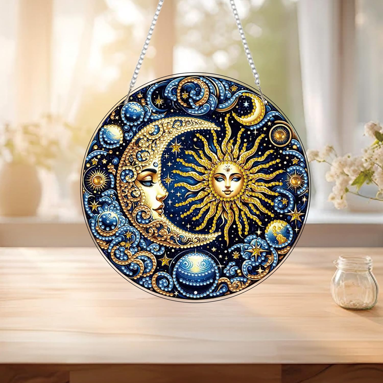 RYMILIE Sun and Moon Diamond Art Hanging Kit for Adult,Special Shaped Rhinestone,Double Sided 5D DIY Acrylic Diamond Art Painting Window Pendants Home Garden Wall Hanging Kits Hanging Ornament