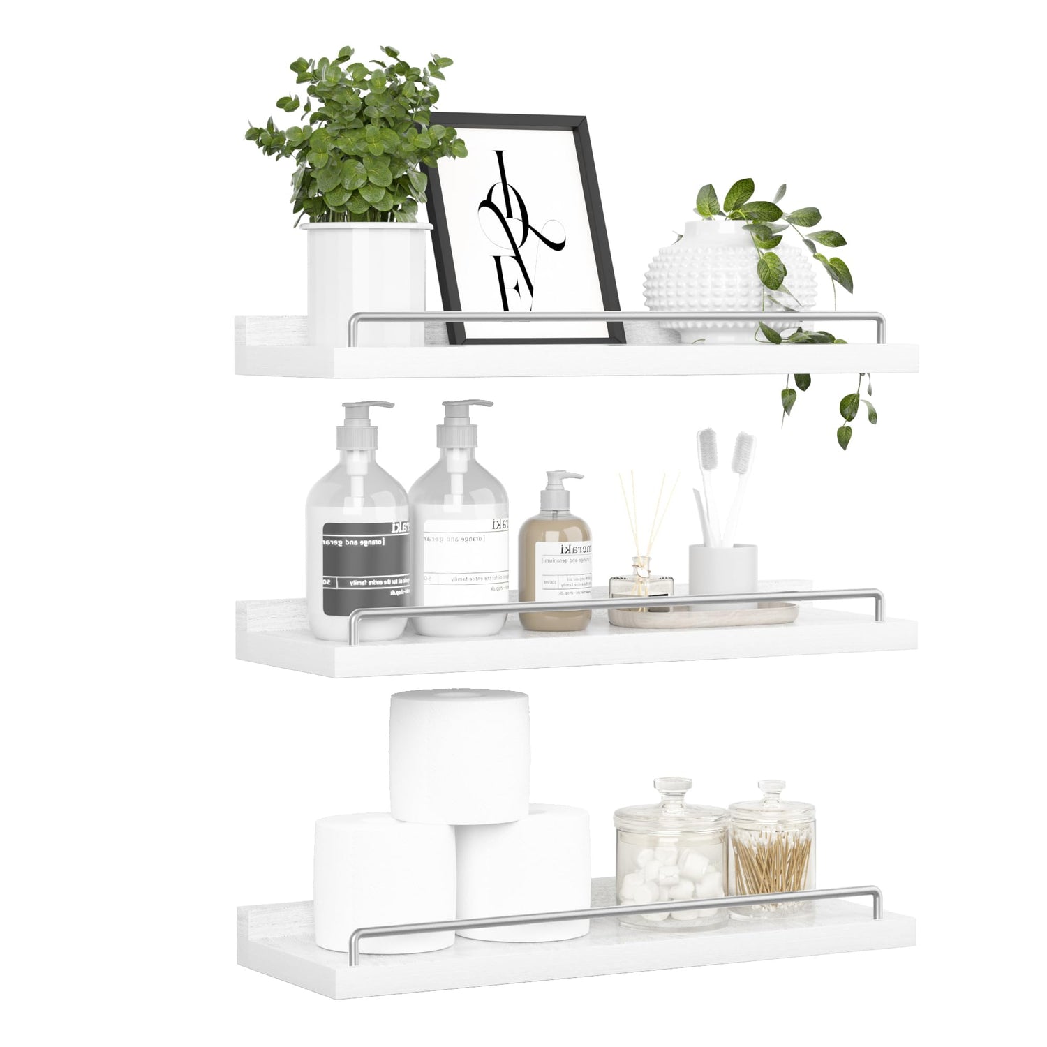 RYOFOBETTO Floating Shelves for Wall Decor, White and Grey Shelves for Bathroom, Living Room, Bedroom, Picture Frames, Plants, Kitchen (Set of 3)