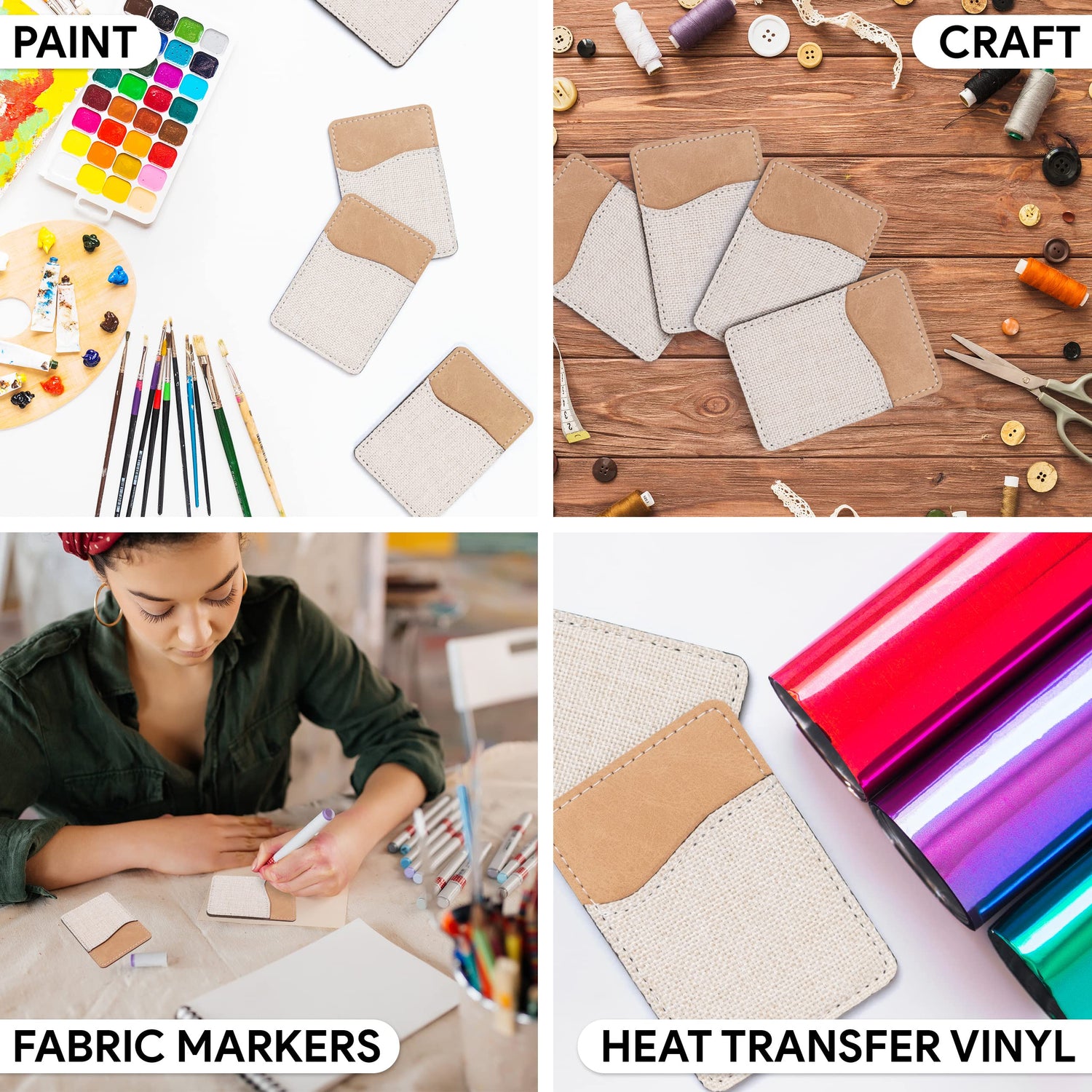 RYTOO Sublimation Blanks Phone Wallet - PU Leather Card Holder for Back of Phone Stick on iPhone Android HTV Friendly DIY Blanks for Vinyl Projects (Beige Polyester Burlap)
