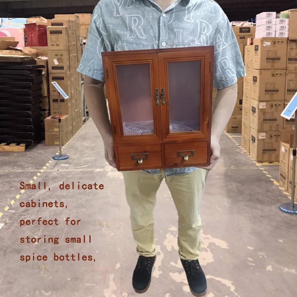 RZGZKLSH Rustic Vintage Mini Wood Counter Top Cabinet, Wall Mount Pine Display Case, Wall Storage Cabinet, Cabinet That Sits on Countertop-Floating Shelf Cabinet Organization12 x4.7"x14"(Brown)