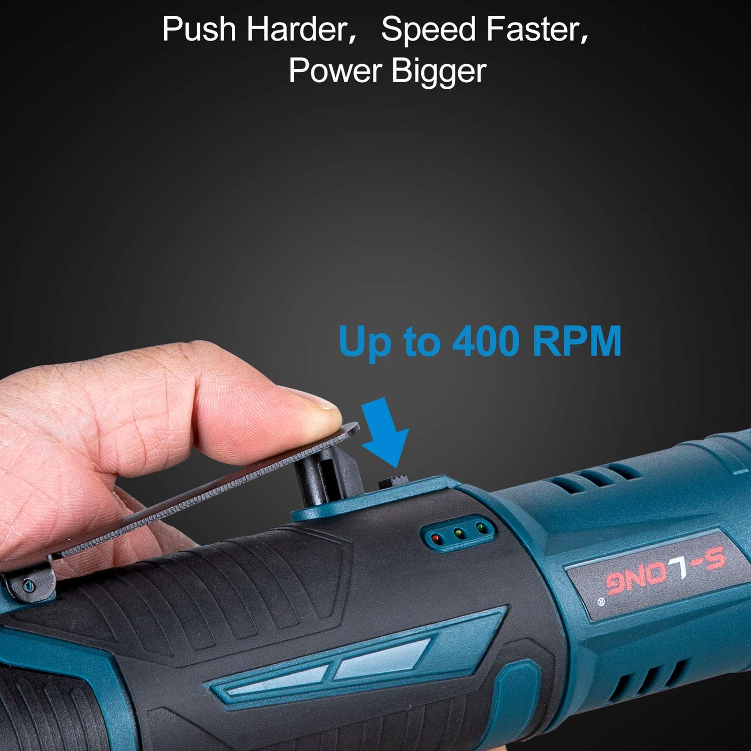 - 【High Performance】: S-LONG cordless ratchet wrench equipped with a 12-volt high spec motor. It can deliver a max torque at 400 RPM and has a variable-speed trigger for excellent control