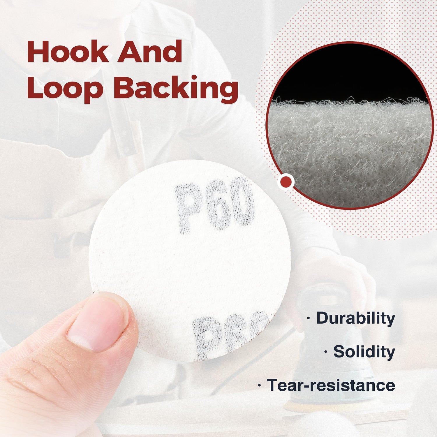 - 【Hook and loop back】 Sanding disc is backed with a hook and loop adhesive that sticks firmly and permanently to the sander, while making changing sandpaper easy and quick. Users can easily change sandpaper with different grit levels to suit different grinding needs.