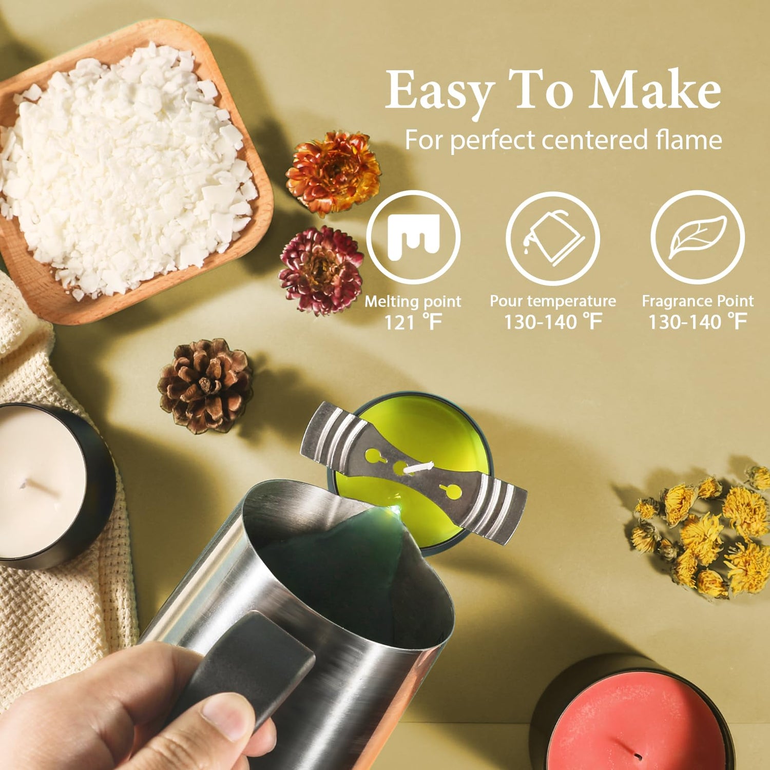 - 【EASY DIY CANDLE MAKING】Beginners and experts alike will love our soy wax for candle making. Simply melt them down and mix at 120 degrees to get started; if you want to add dyes or scents, raise the temperature to 180 degrees (or 185 degrees if the dyes do not fully melt). That will help every beginner make handmade candles at home with ease and total safety.