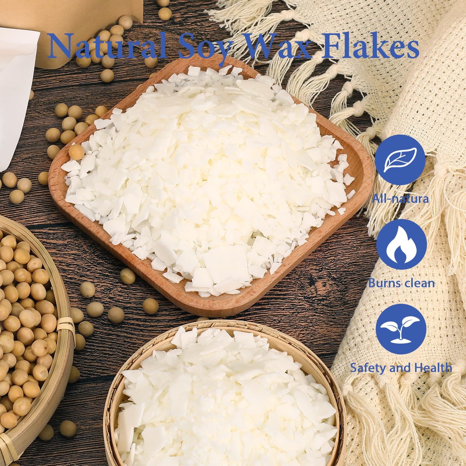 - 【Soy Wax and Candle Wicks】5lb Soy wax for candle making, Our candle wax is natural soybean wax and candle wicks are 100% cotton . So our wax burns more evenly and cleanly. There is no unpleasant odor during the combustion process, it is non-toxic, and there is no lead or zinc, so you can use it with confidence!
