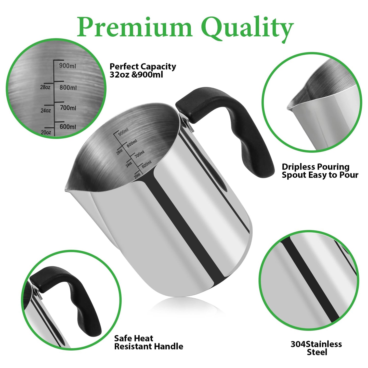 - đ§ĄăCandle Melting PotăThis candle making pouring pot can hold 32oz/900ml of molten wax. This melting wax pot is made of high quality 304 stainless steel, with strong Anti-rust, high temperature and corrosion resistance. There is no dripping at the pouring mouth, which controls the flow and prevents leakage.