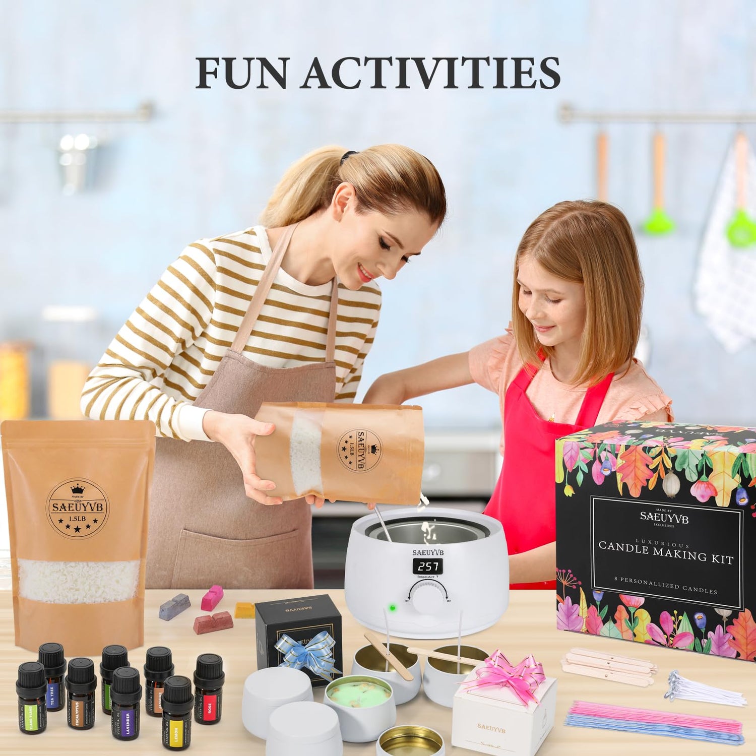 SAEUYVB Complete Candle Making Kit, Candle Making Kit for Adults with Hot Plate, DIY Starter Candle Making Supplies/Kit - Perfect as Home Decorations(White)