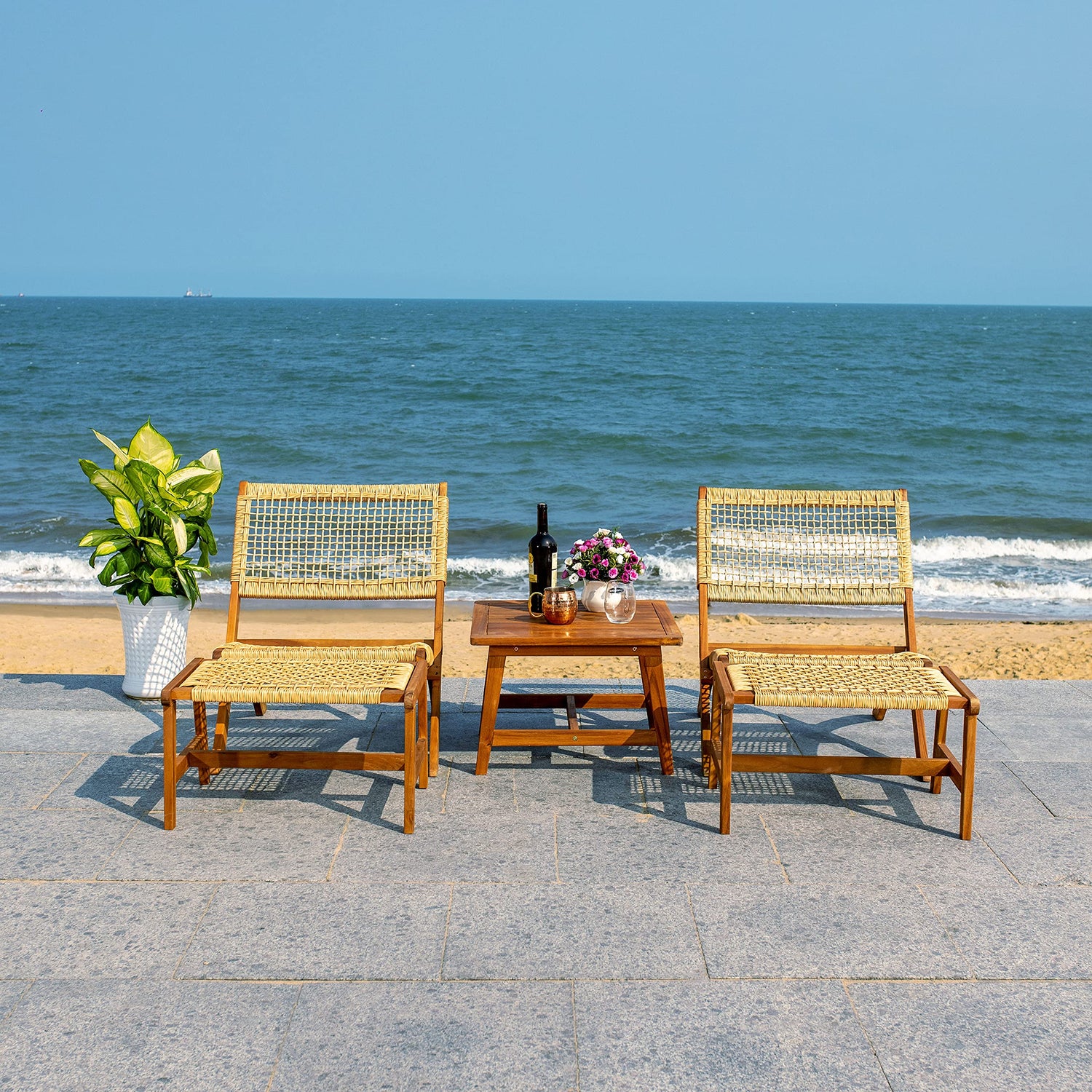 SAFAVIEH Outdoor Collection Casella Acacia Wood/Light Brown 5-Piece Patio Set PAT7077A, Natural/Natural