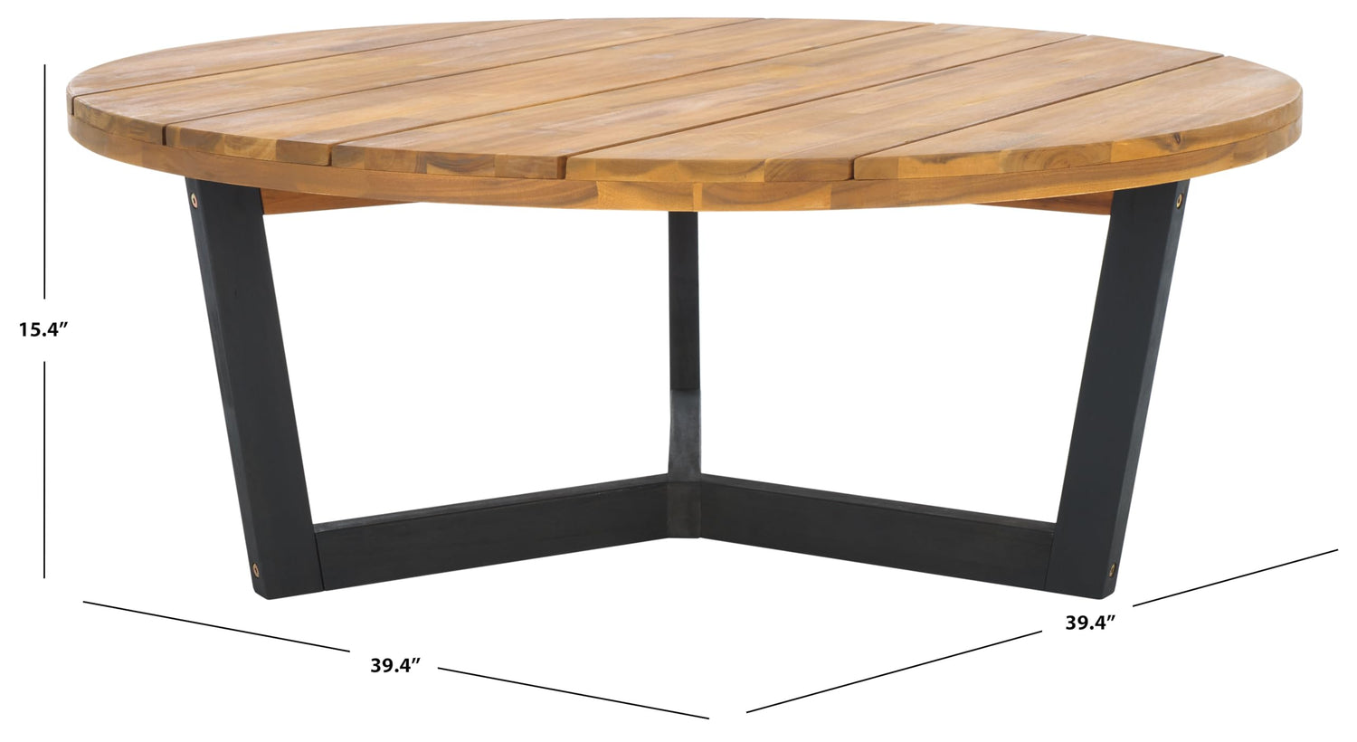 SAFAVIEH Outdoor Collection Leo Natural/Black Solid Wood Round Coffee Table