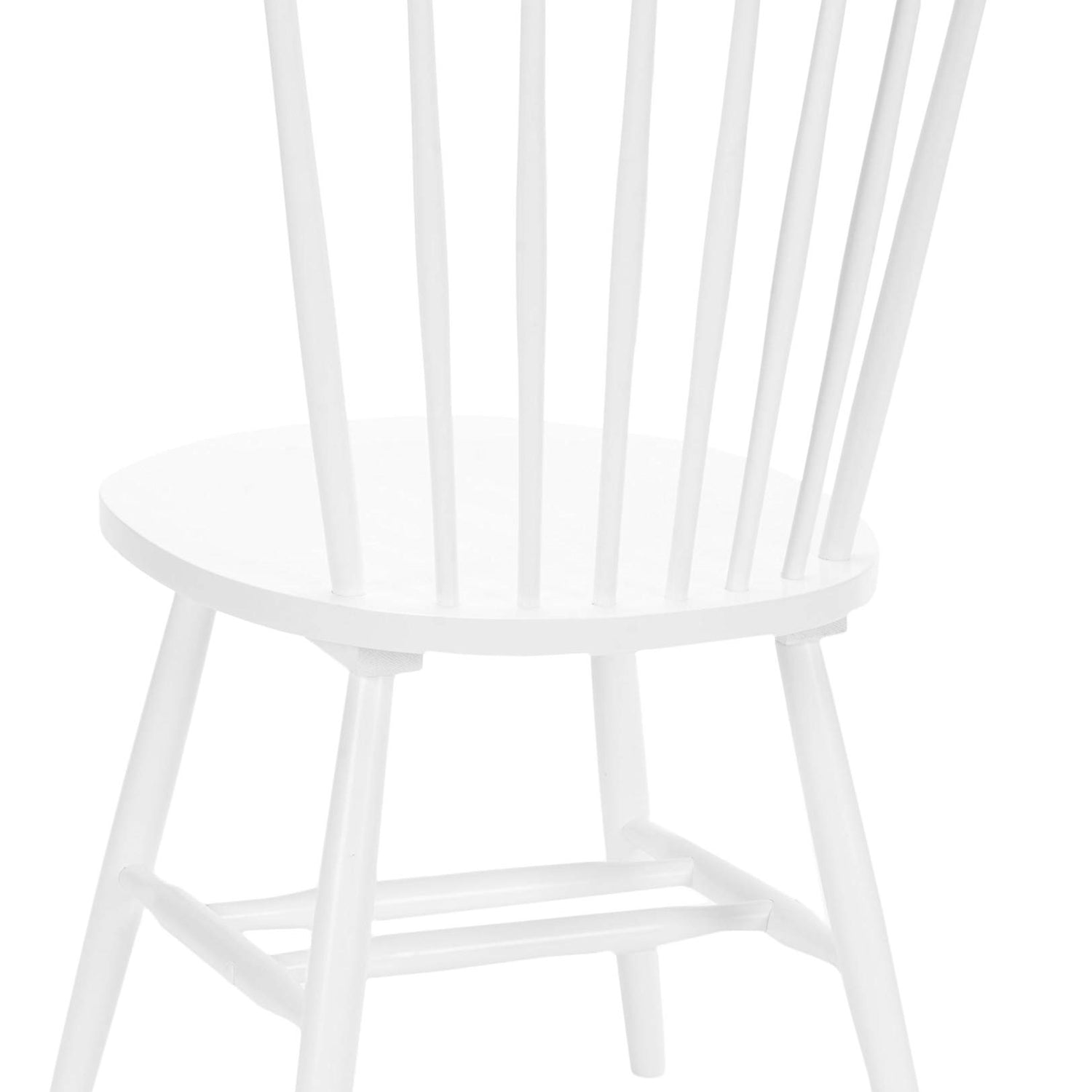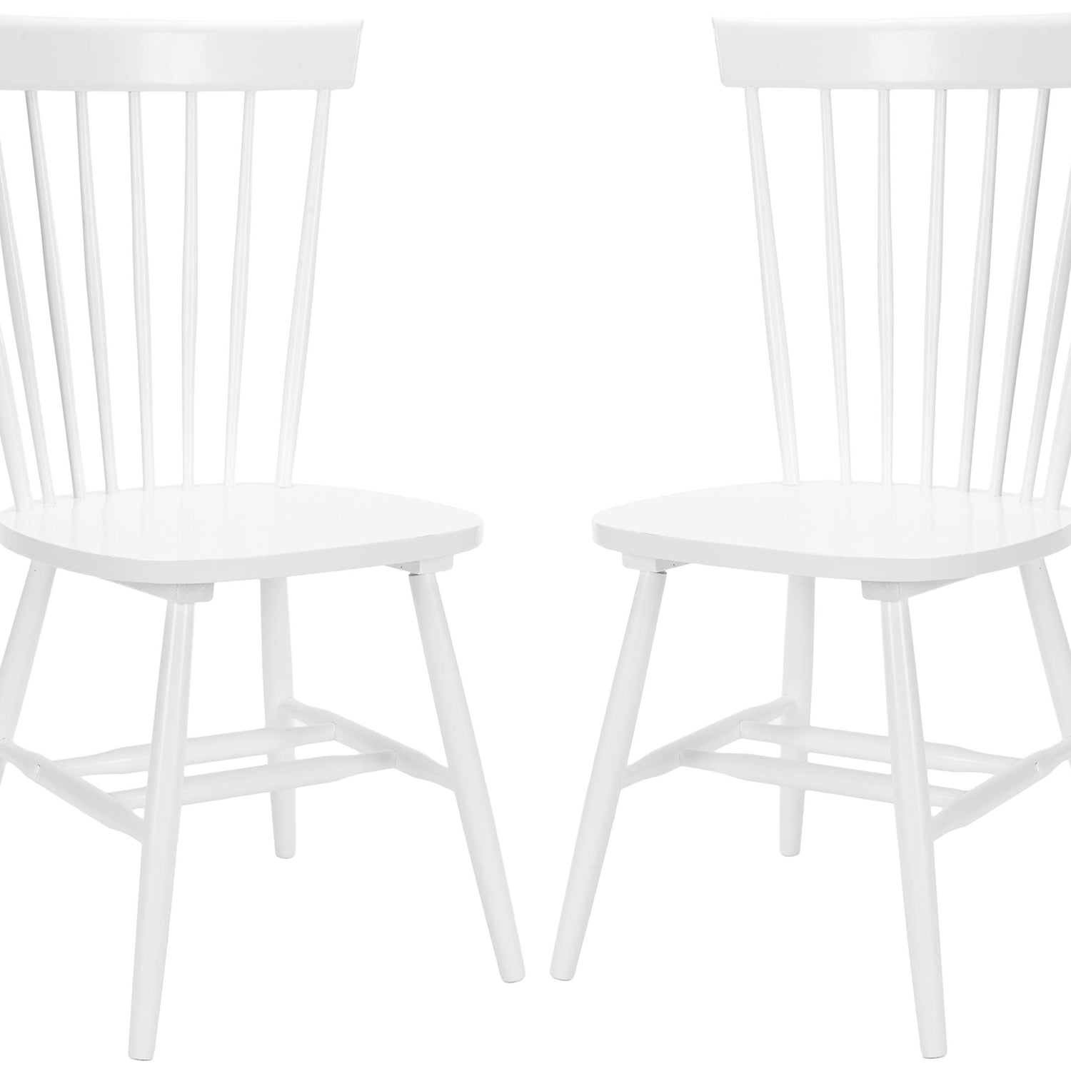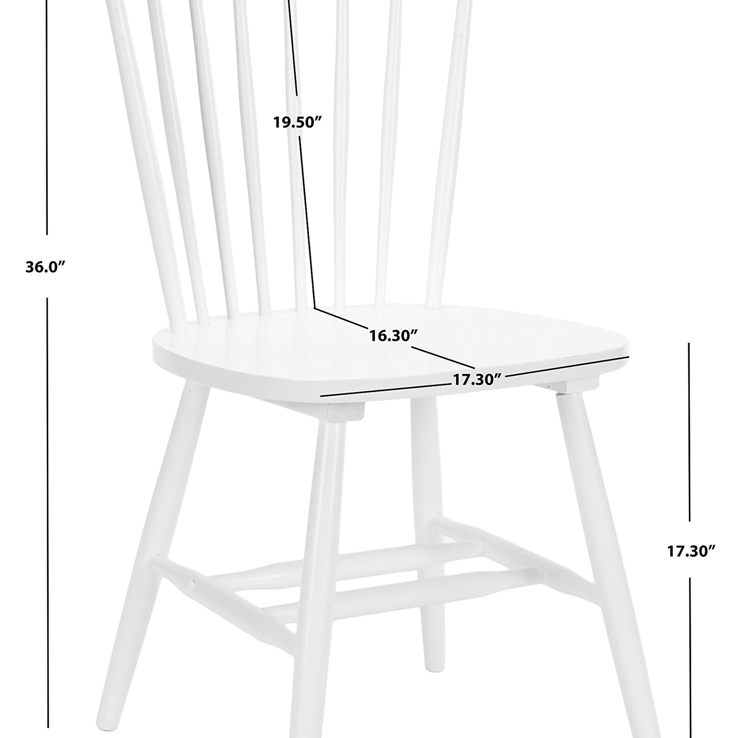 Details: The classic Safavieh American Home Collection Bristol White Spindle Side Chairs is sure to be the perfect addition to any decor. The Bristol Chair is crafted from sturdy Malaysian Oak and has a lovely white color. It features a chic glossy finish and sleek design. The Bristol Chair comes in a set of two which makes it perfect for entertaining. Assembly required, these chairs measure -Inch 21 wide by 20.5 -Inch deep by 36 -Inch tall with a seat height of 17.3 -Inch.