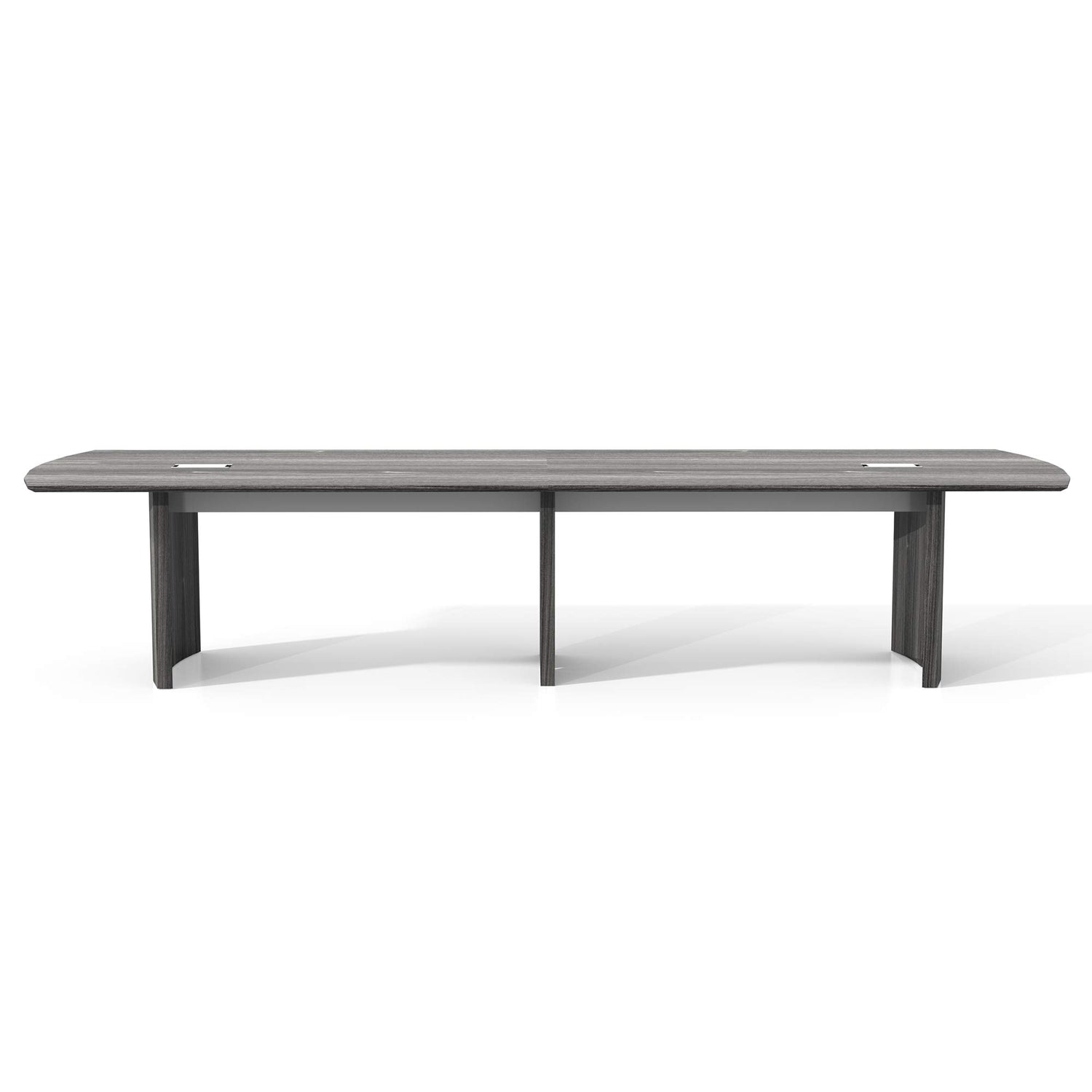 - SLEEK AESTHETIC. Curved ends and beveled edges on the 1" thick tabletop set a stylish yet professional tone for your meeting room. Silver detailing on the grommet hole covers and lower center panels adds just the right amount of modern edge.