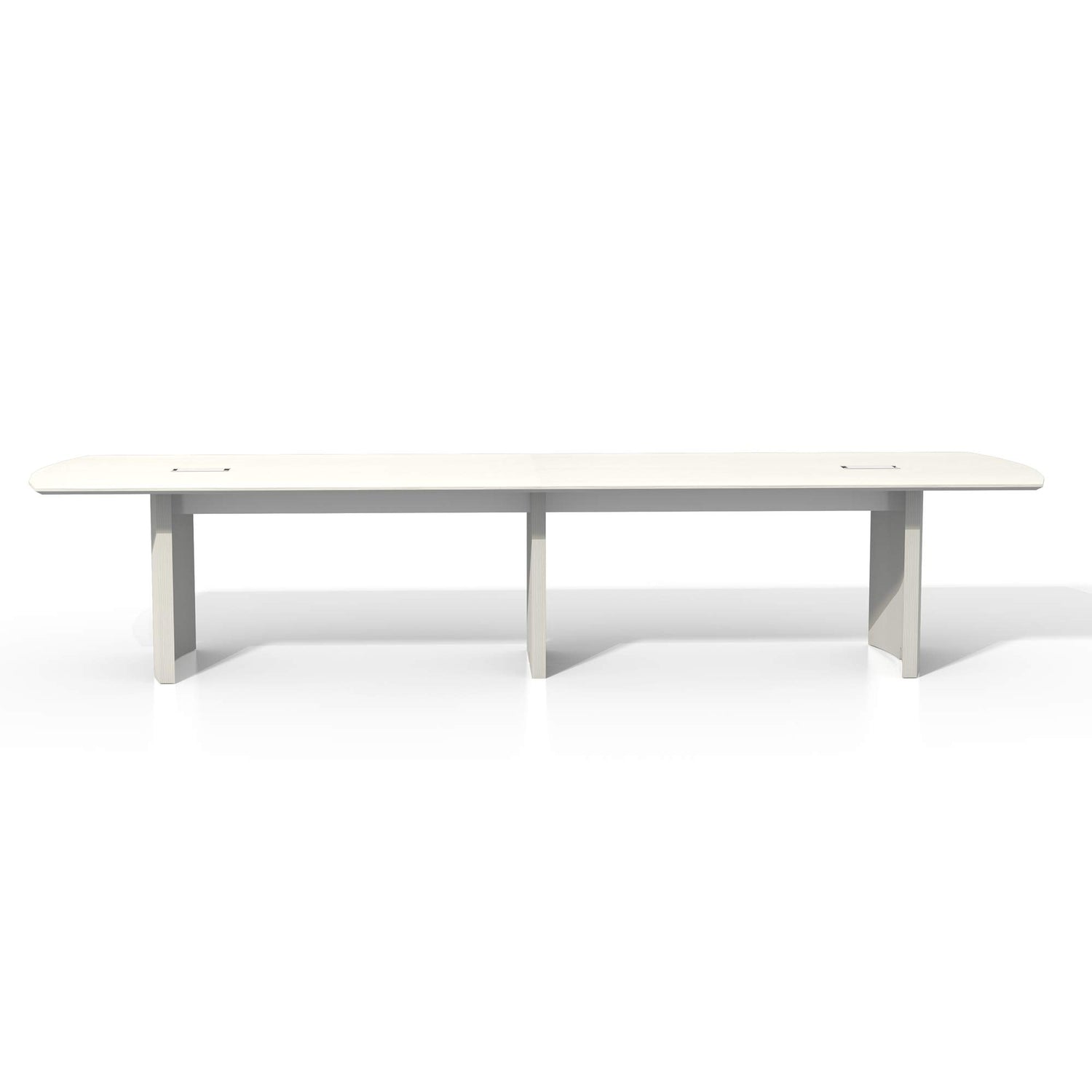 - SLEEK AESTHETIC. Rounded ends and beveled edges on the 1" thick tabletop set a stylish yet professional tone for your meeting room. Silver detailing on the grommet hole covers and lower center panels adds just the right amount of modern edge.