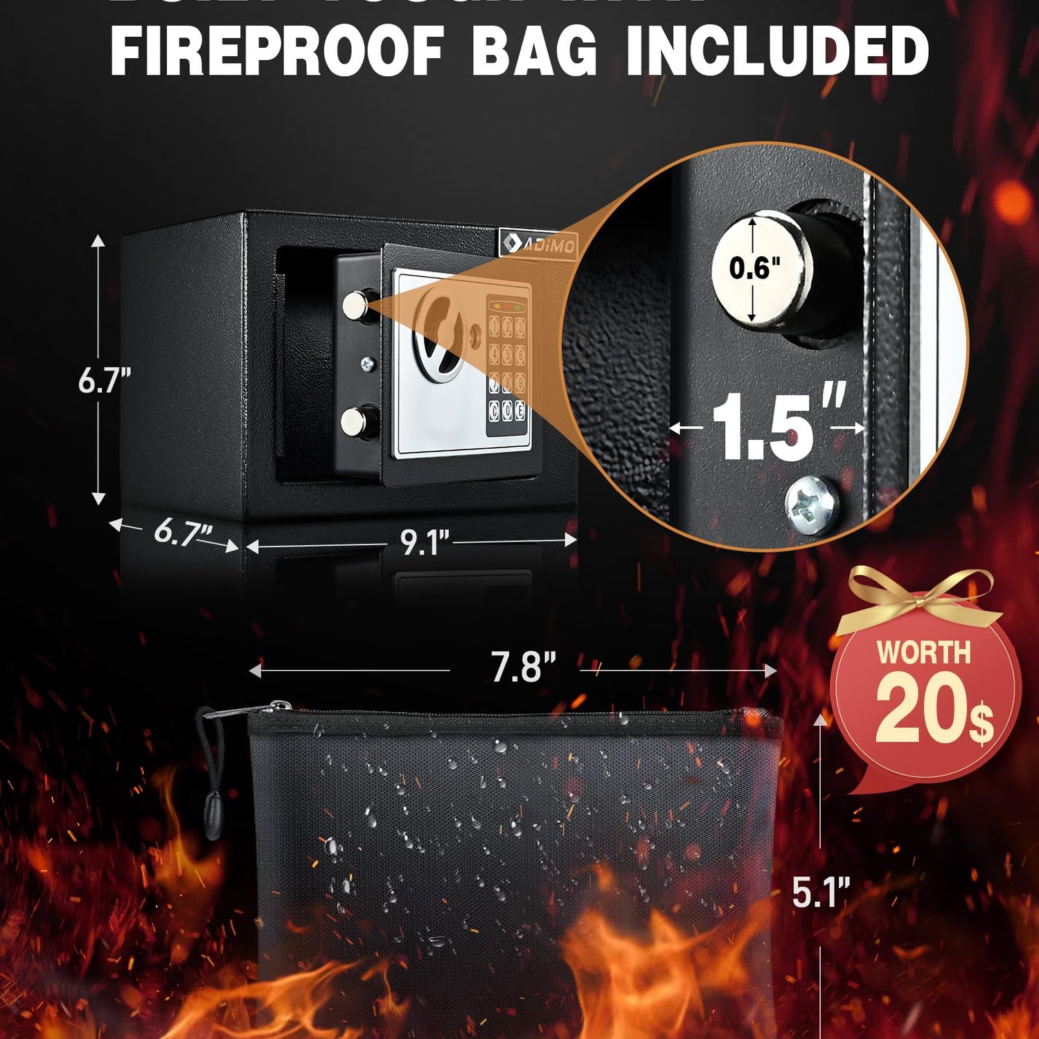 - 【Extra Fireproof & Waterproof Bag】Our small safe box is equipped with a waterproof and fireproof money bag which is perfect for protecting your irreplaceable documents, cash, and small valuables and with this small safe to store cash, checks, credit cards, jewelry, and important documents. The small safe for college dorm room is also suitable for a personal document safe at college or university.