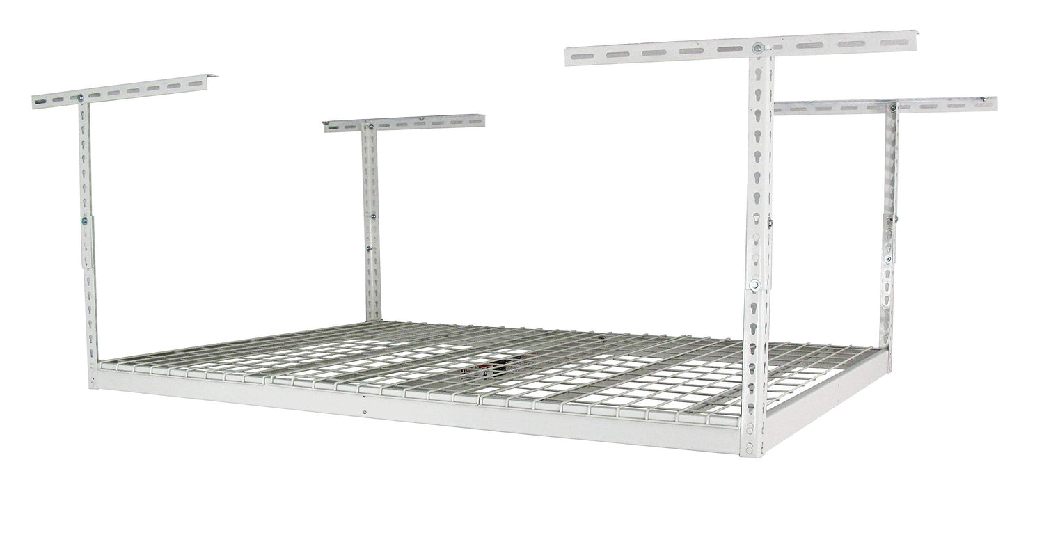 SafeRacks 4x6 Overhead Garage Storage Rack - Height Adjustable Steel Overhead Storage Rack - 500 Pound Weight Capacity (White, 24"-45")