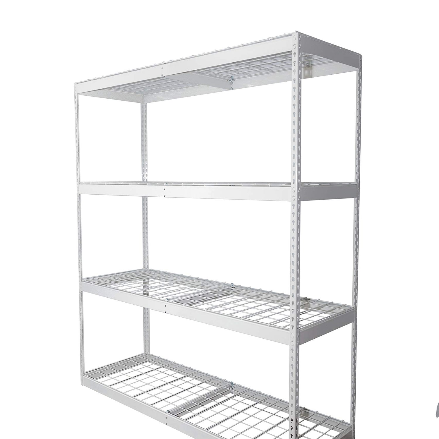 Details: Our heavy-duty storage shelves feature four adjustable shelves with a 500-pound weight capacity per shelf and a 2000-pound maximum weight capacity. With sturdy L-Channel beams and durable powder coat finish, you'll love our heavy-duty shelf unit. Our patent-pending, all-steel shelving unit features wire grid shelves and adjustable shelf heights for the ideal combination of reliability, function, and convenience. Our bolt-less riveted metal shelving unit makes assembly quick and easy. Forget about the time, effort, hassle, and frustration of metal storage shelves that are a time-consuming pain to piece together! Please be advised that this unit ships in two separate boxes and weighs approximately 115 pounds. De-clutter and organize your warehouse, business, shop, or home with a shelf organizer you can count on!