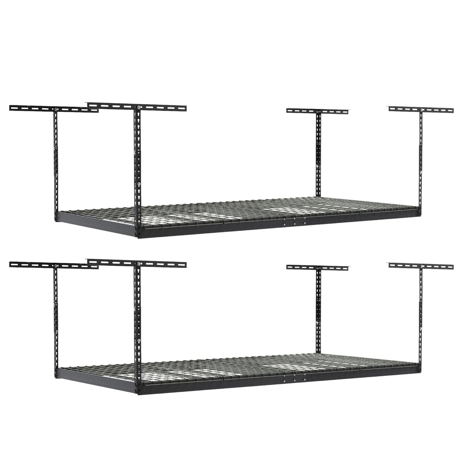 SafeRacks Overhead Garage Storage Rack, Heavy Duty Racks for Garage w/ 600 lb Capacity, Easy Garage Storage Adjustable Storage Rack Ceiling Mount Storage for Garage 4x8 Hammertone 18"-33" 2 Pack