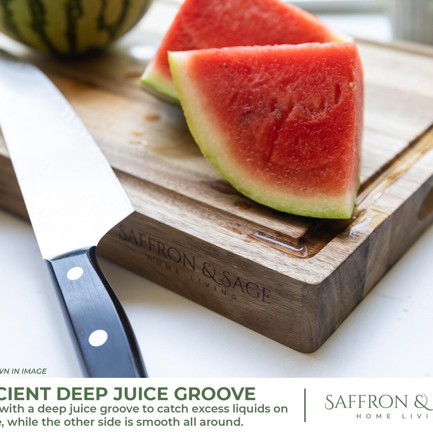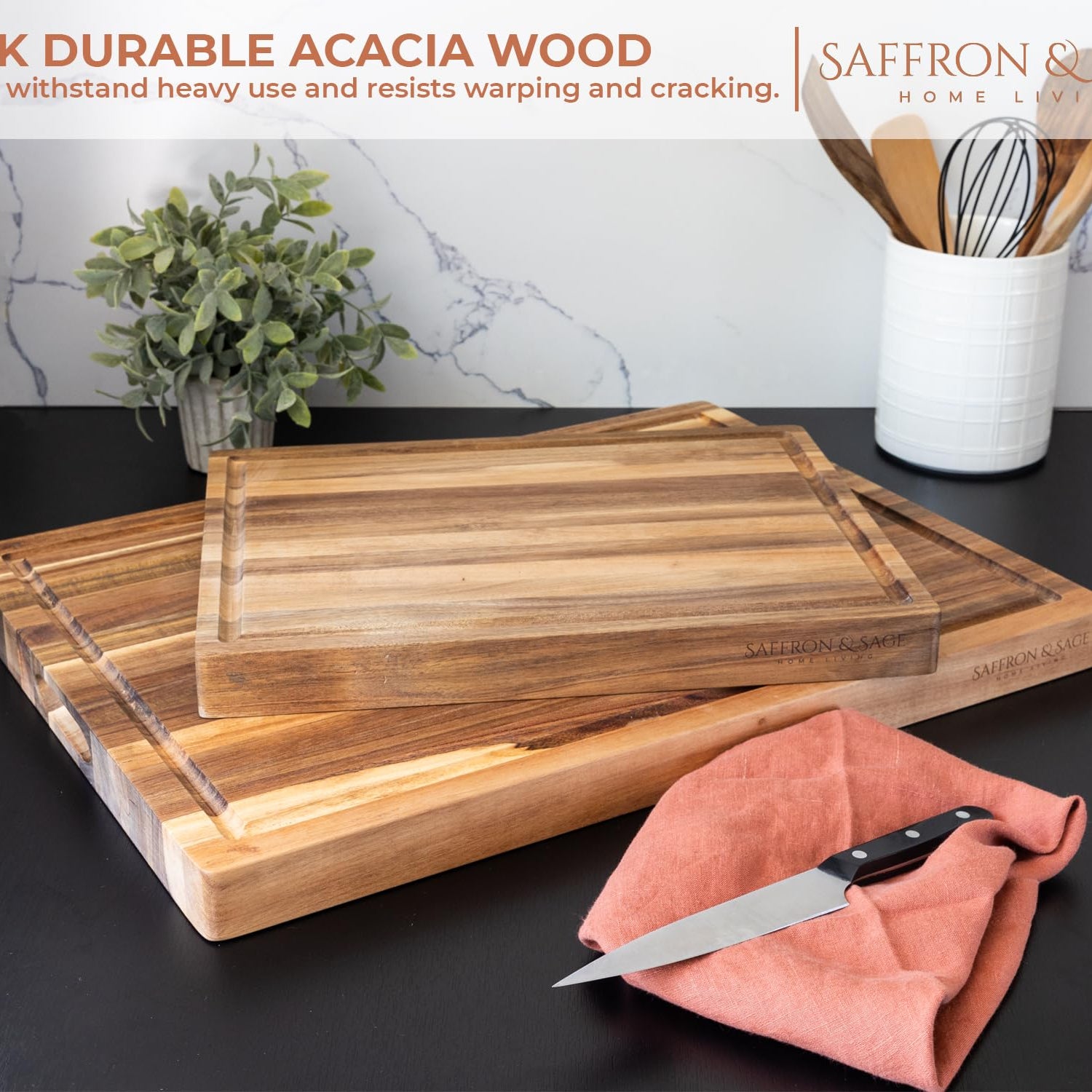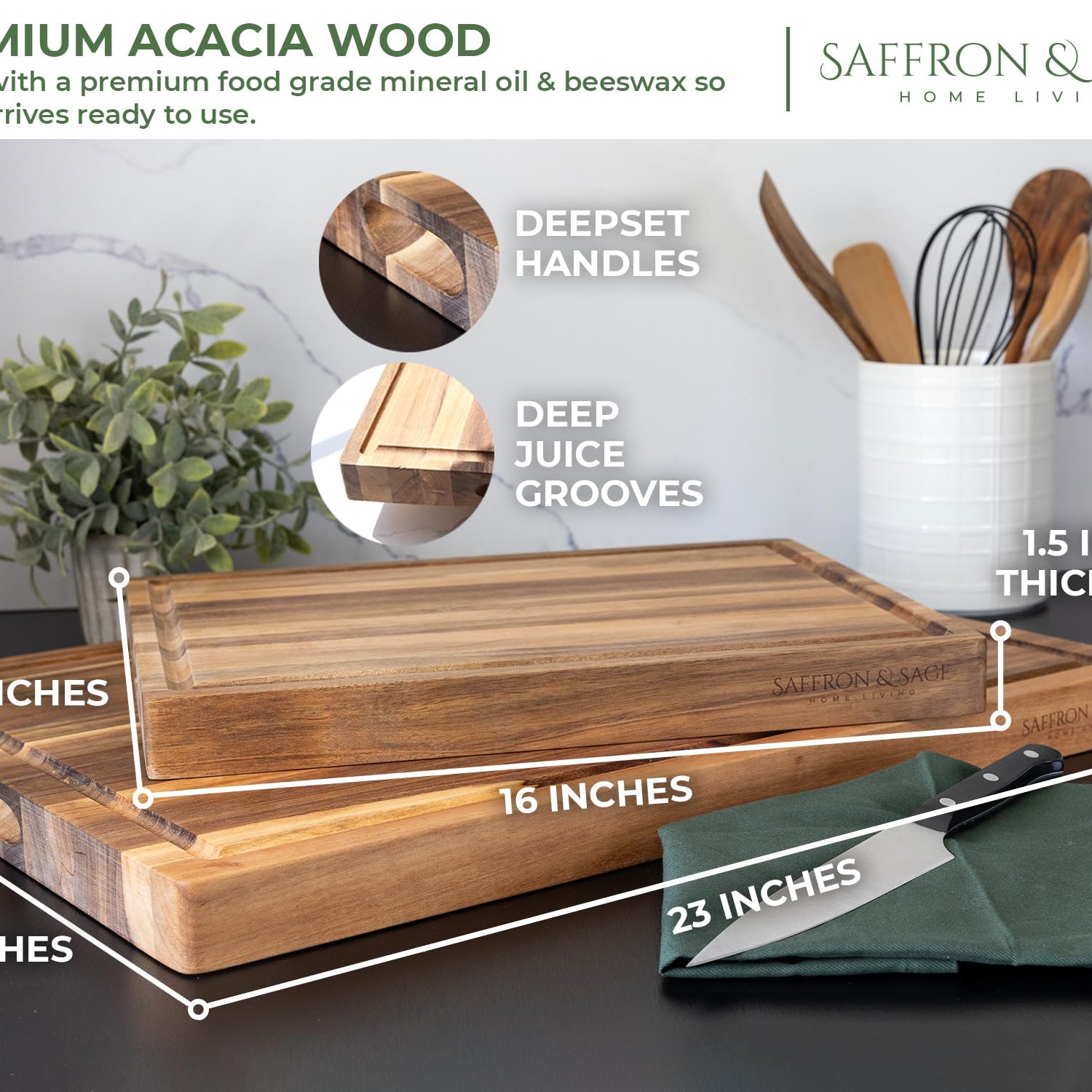 Saffron & Sage Large Wood Cutting Board - Thick 16 x 12 x 1.5 Inch Acacia Wooden Cutting Boards for Kitchen use with Deep Juice Groove, Reversible