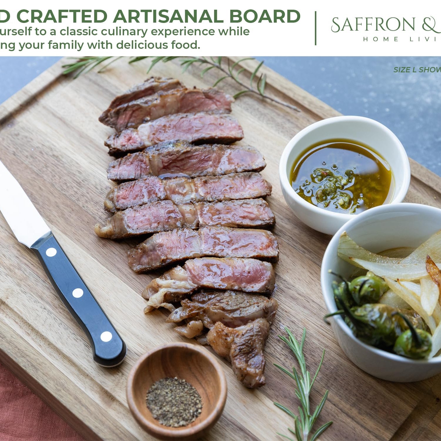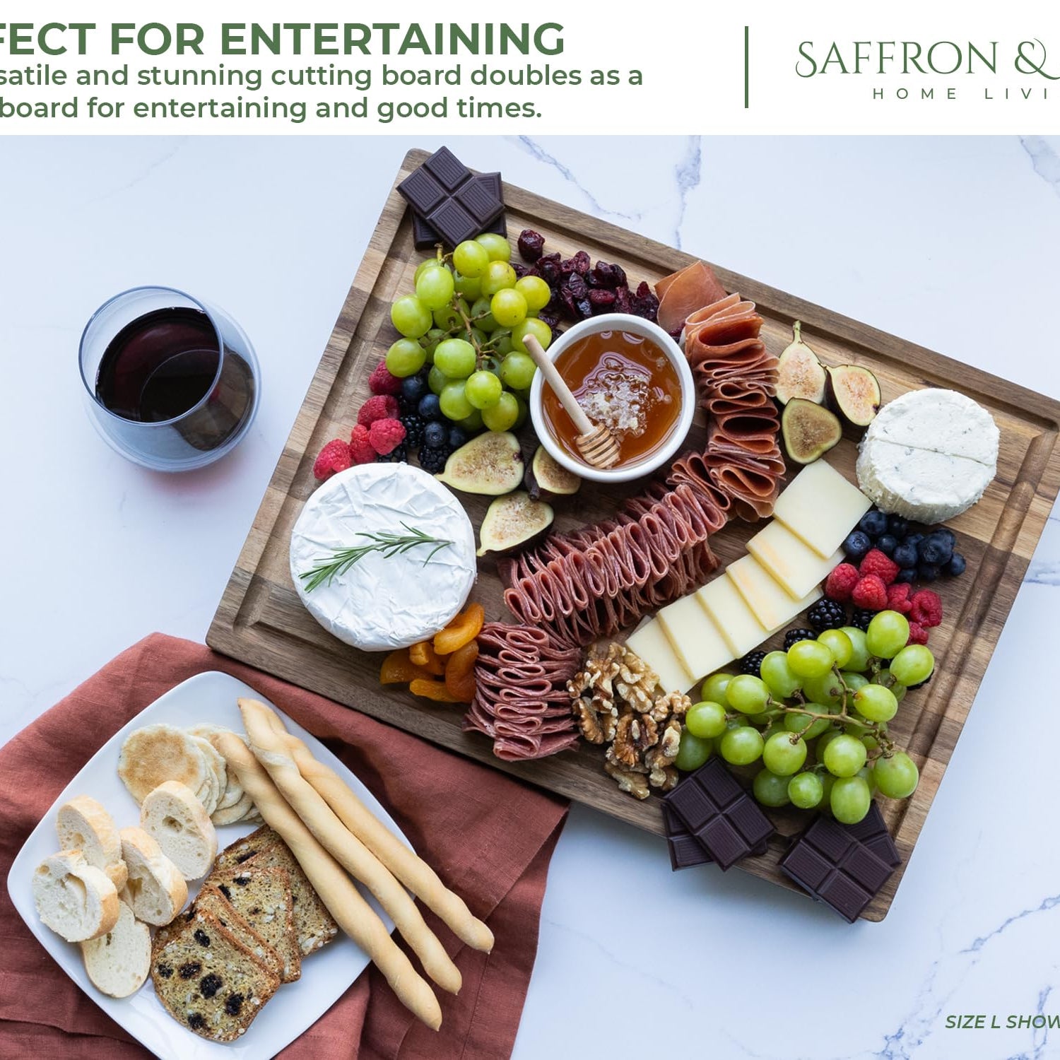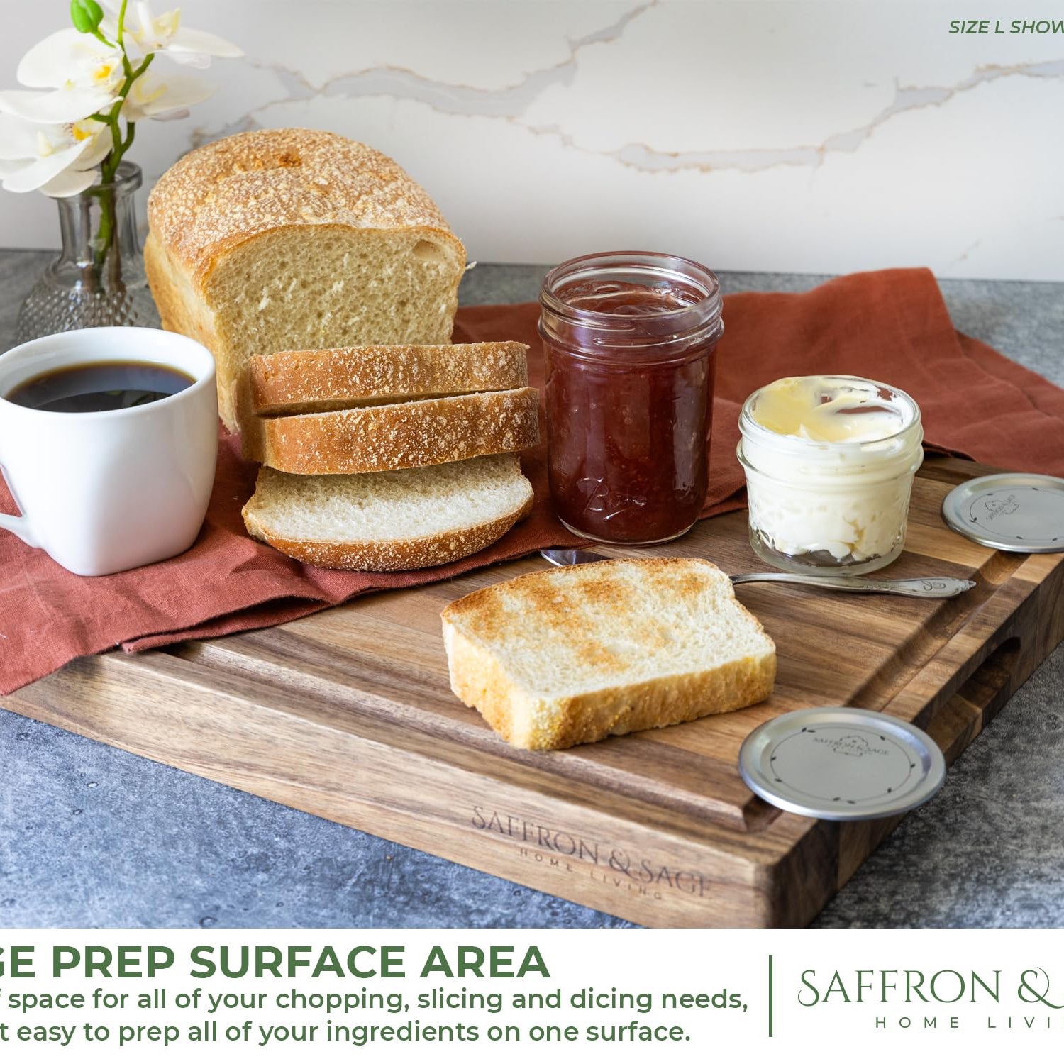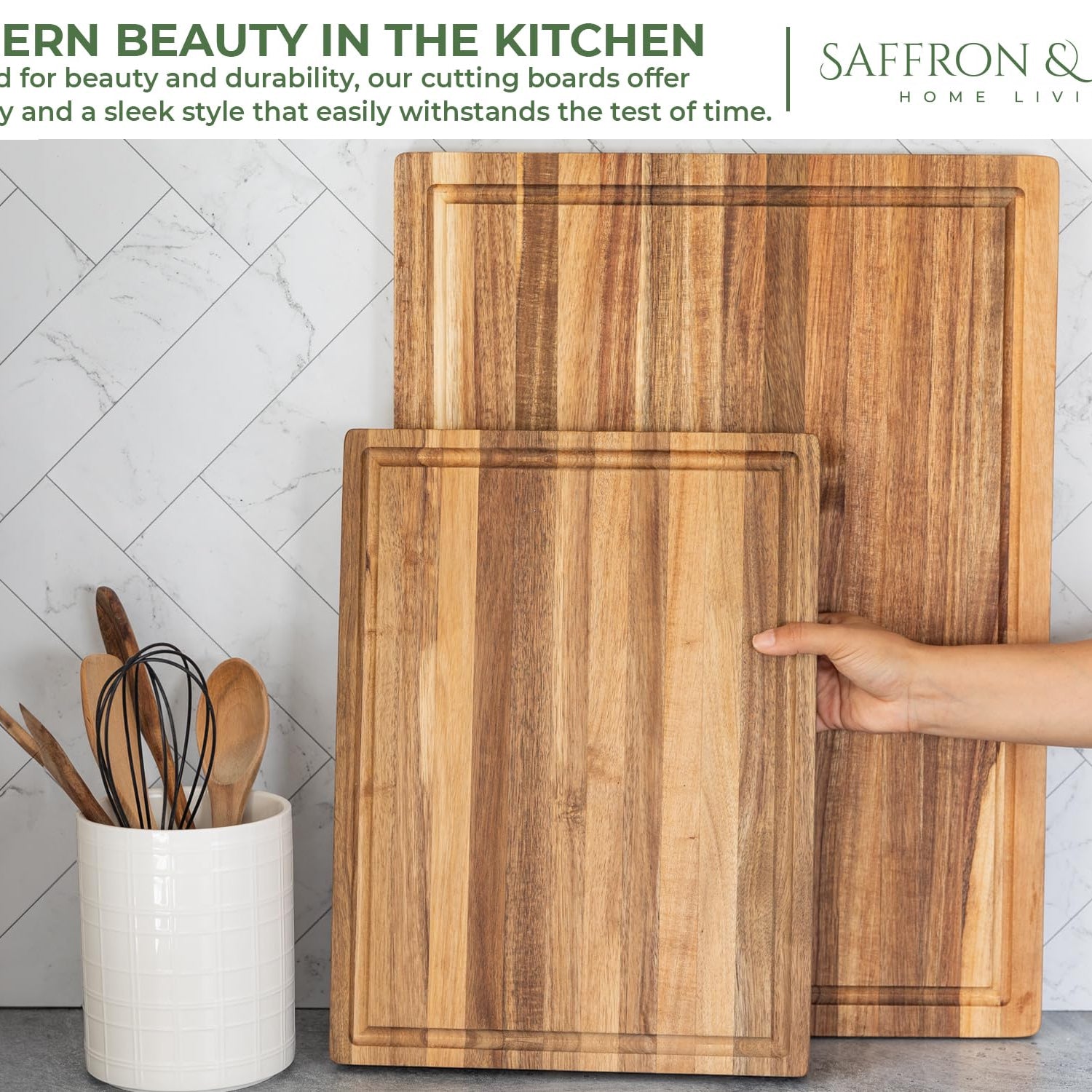 Saffron & Sage Large Wood Cutting Board - Thick 16 x 12 x 1.5 Inch Acacia Wooden Cutting Boards for Kitchen use with Deep Juice Groove, Reversible