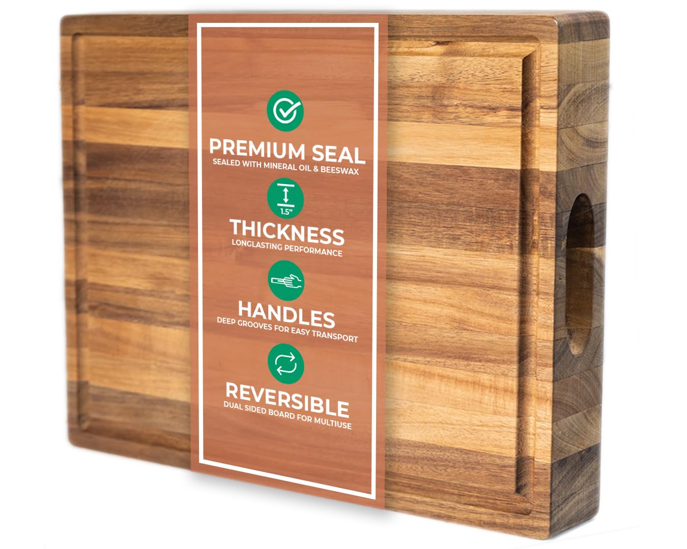 - While other hard wood cutting boards tend to warp and crack, our 1.5” thick, quality acacia wood cutting board was designed to withstand heavy use and resist warping and cracking giving you a dependable, flat surface for years to come. Acacia wood is naturally resistant to moisture, which is what makes it an ideal hardwood carving board.