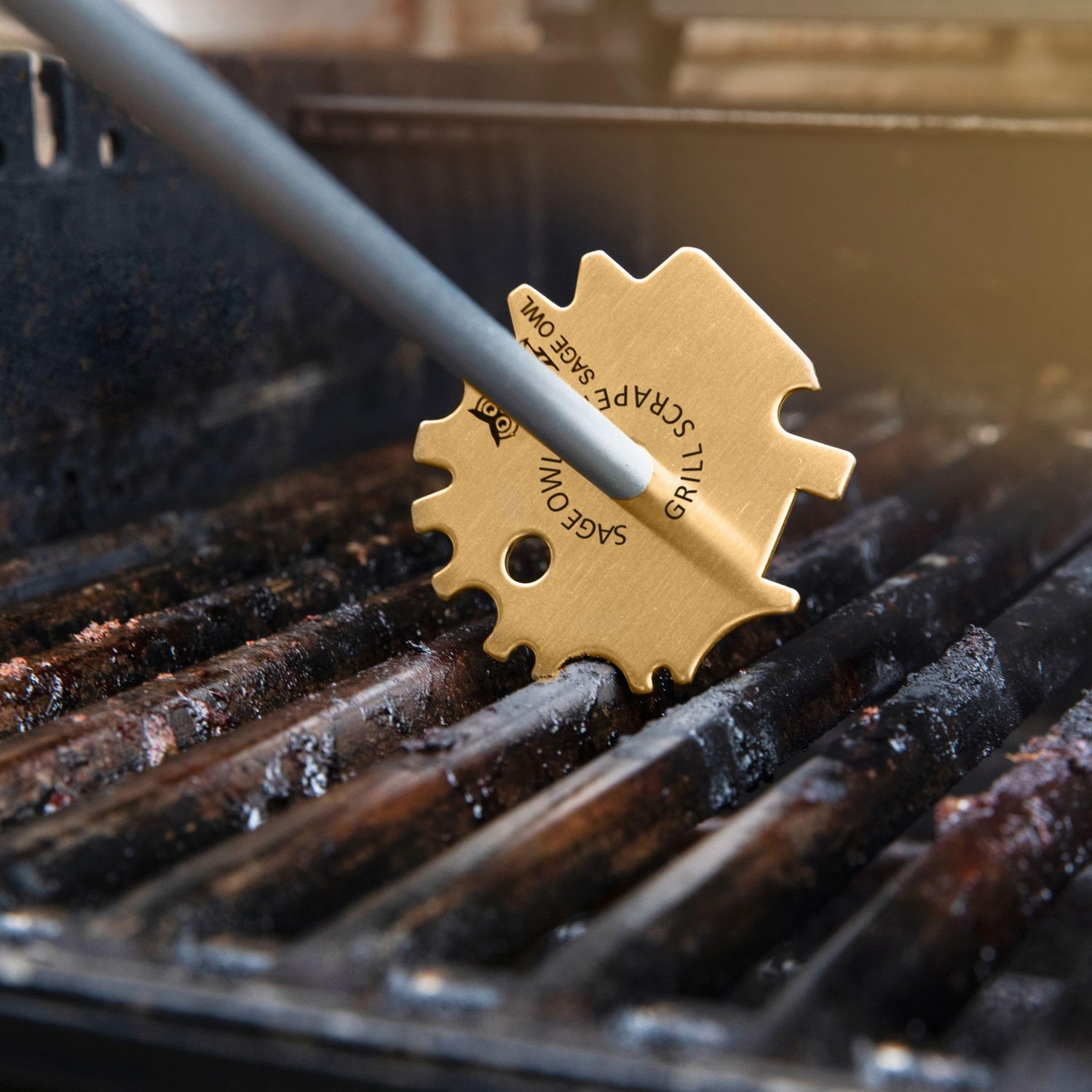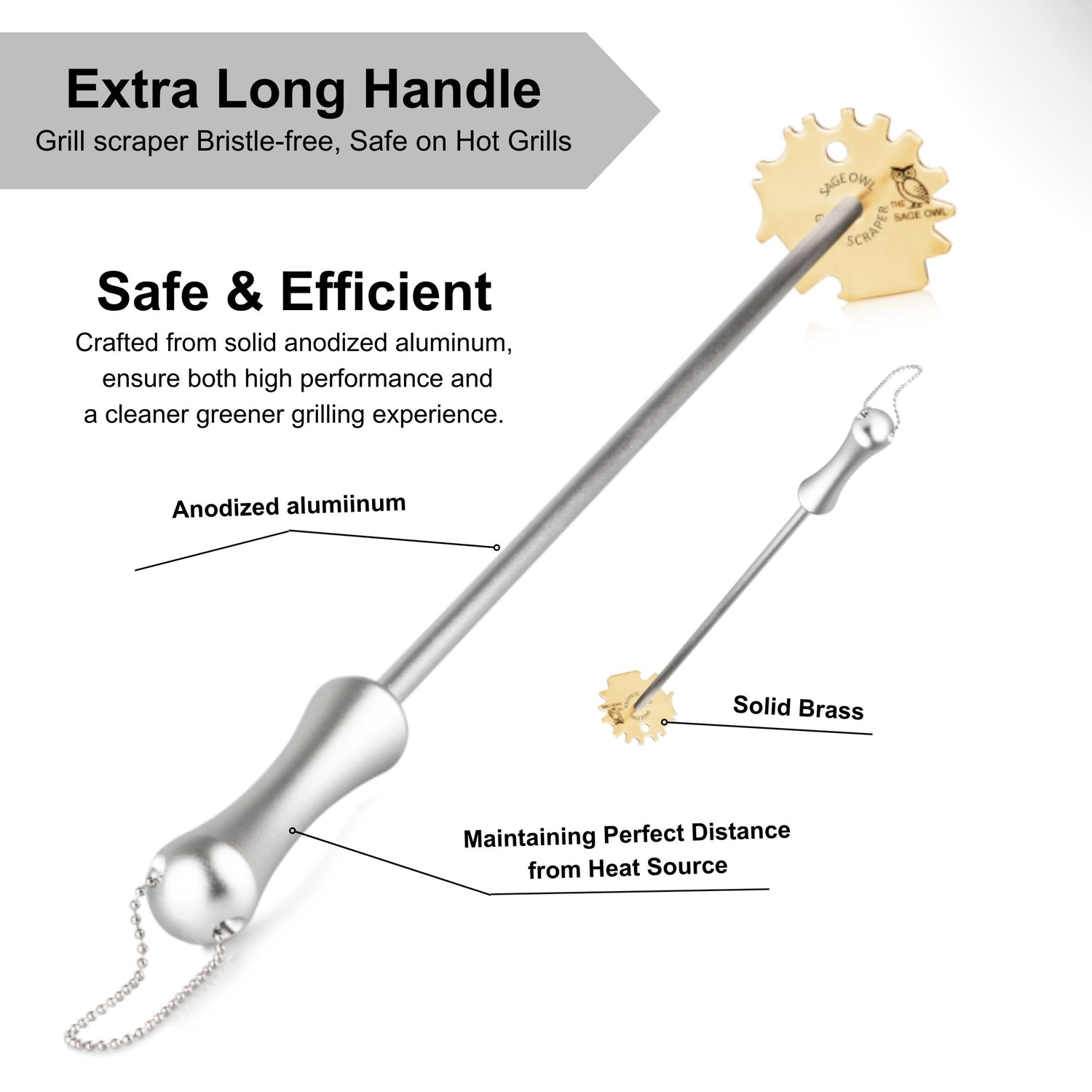 Sage Owl Bristle-Free Brass BBQ Grill Scraper with 17.5” Handle – Safe Universal Grill Cleaner for Outdoor Grills, Porcelain, Grilling Tools, and Kitchen Gadgets - Unique Gifts for Husband Birthday