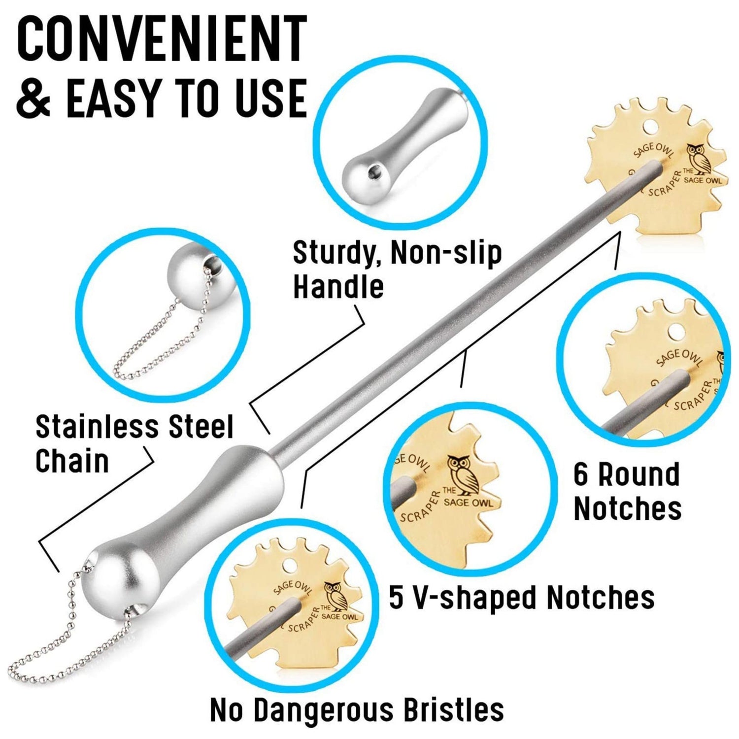 - Safer Than a Wire Brush – Grilling with a wire barbecue grill brush can be risky, as bristles may come loose and end up in your food, causing health risks. No one wants to worry about swallowing stray bristles. This bristle-free BBQ grill scraper is an ideal grill tools brass gifts for men who have everything and who prioritize safety.