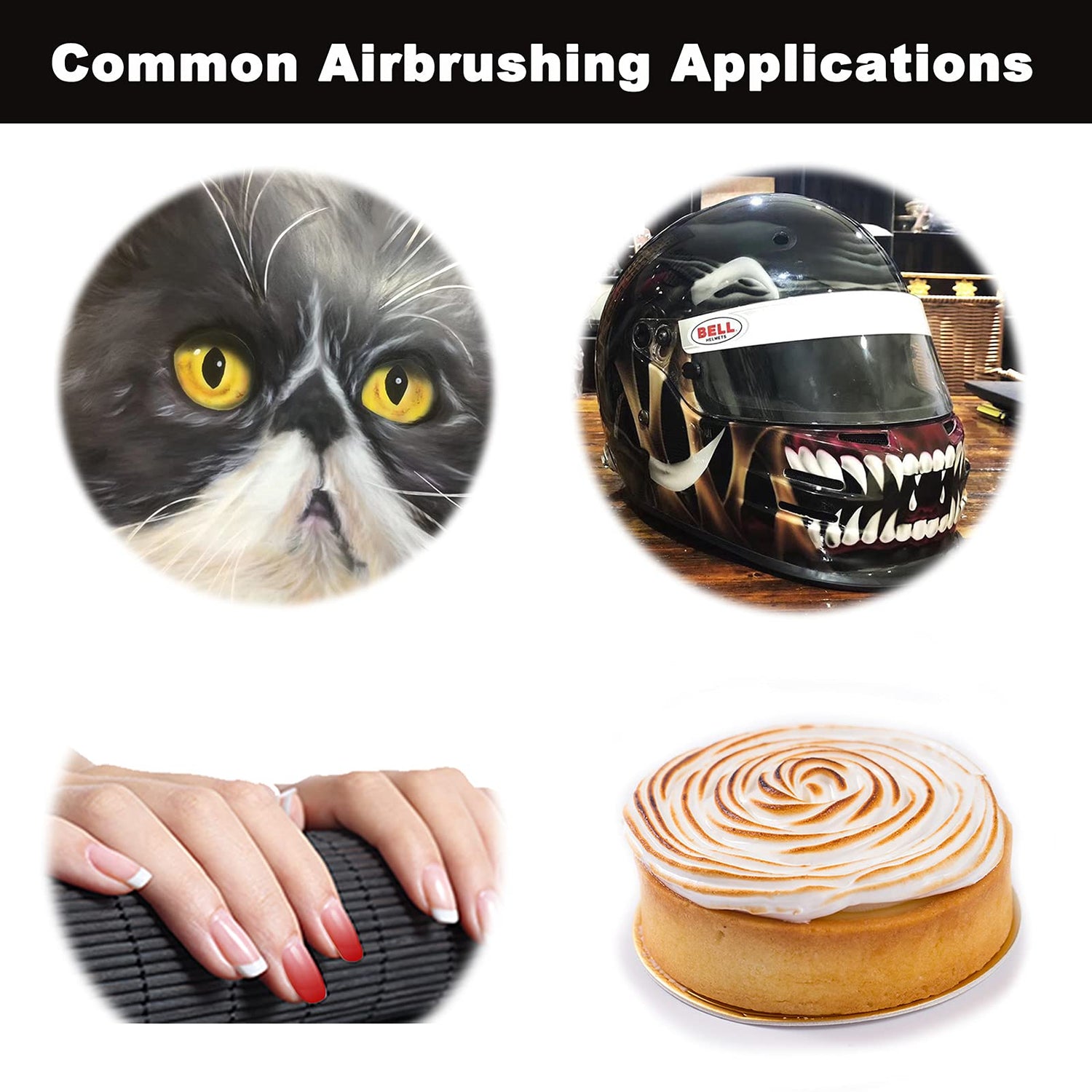 - MULTI-APPLICATION: Airbrush for cake decorating, models, hobby, crafts, auto graphics, temporary tattoo, nail art, makeup. Suitable with acrylic paint, body art ink, food colors, nail color and air brush foundation.