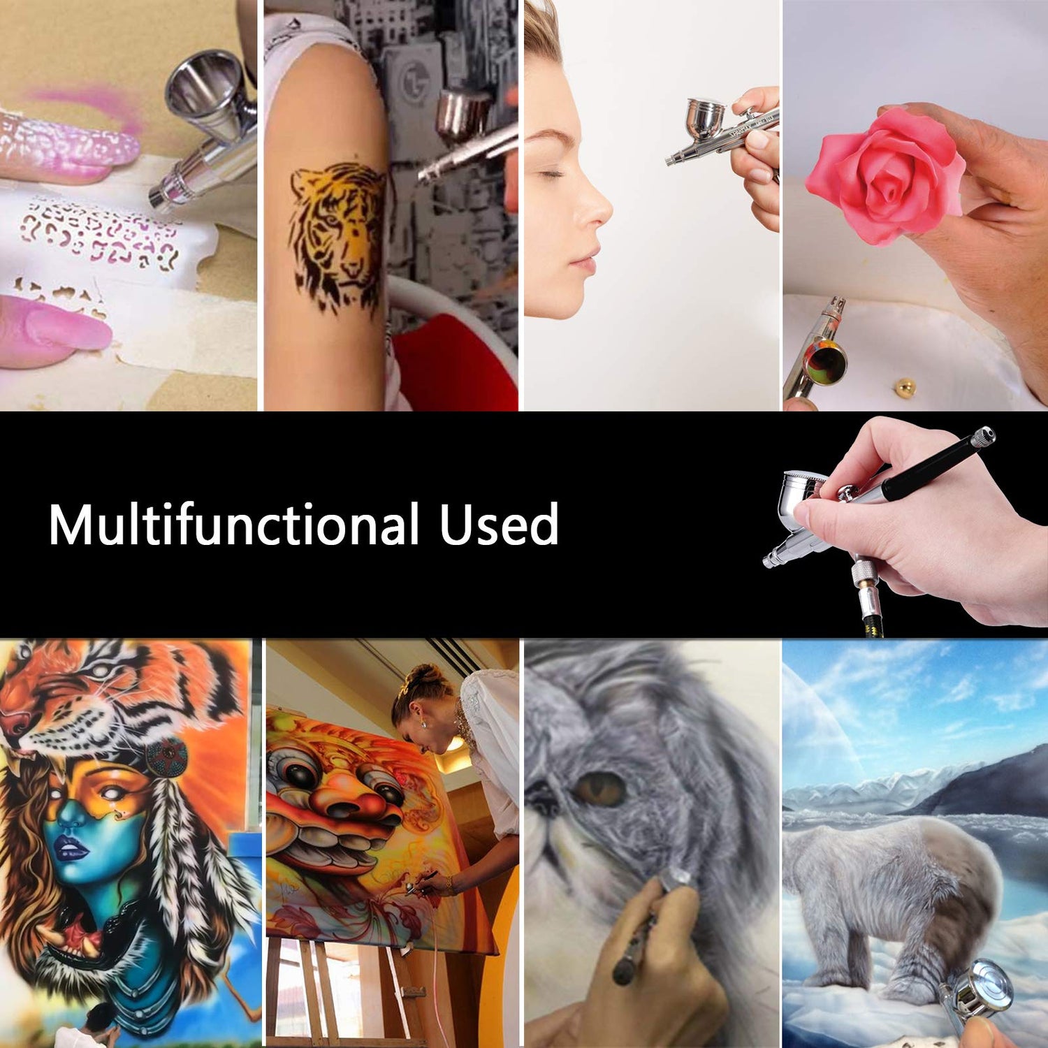 - SAGUD Professional airbrush gun spray paint set is highlights the quality and value for money. Great Start for beginners, students and advanced artists. This kit can work with most types of paint spray media and works excellent for temporary tattoos, nail art, modeling tool and more.