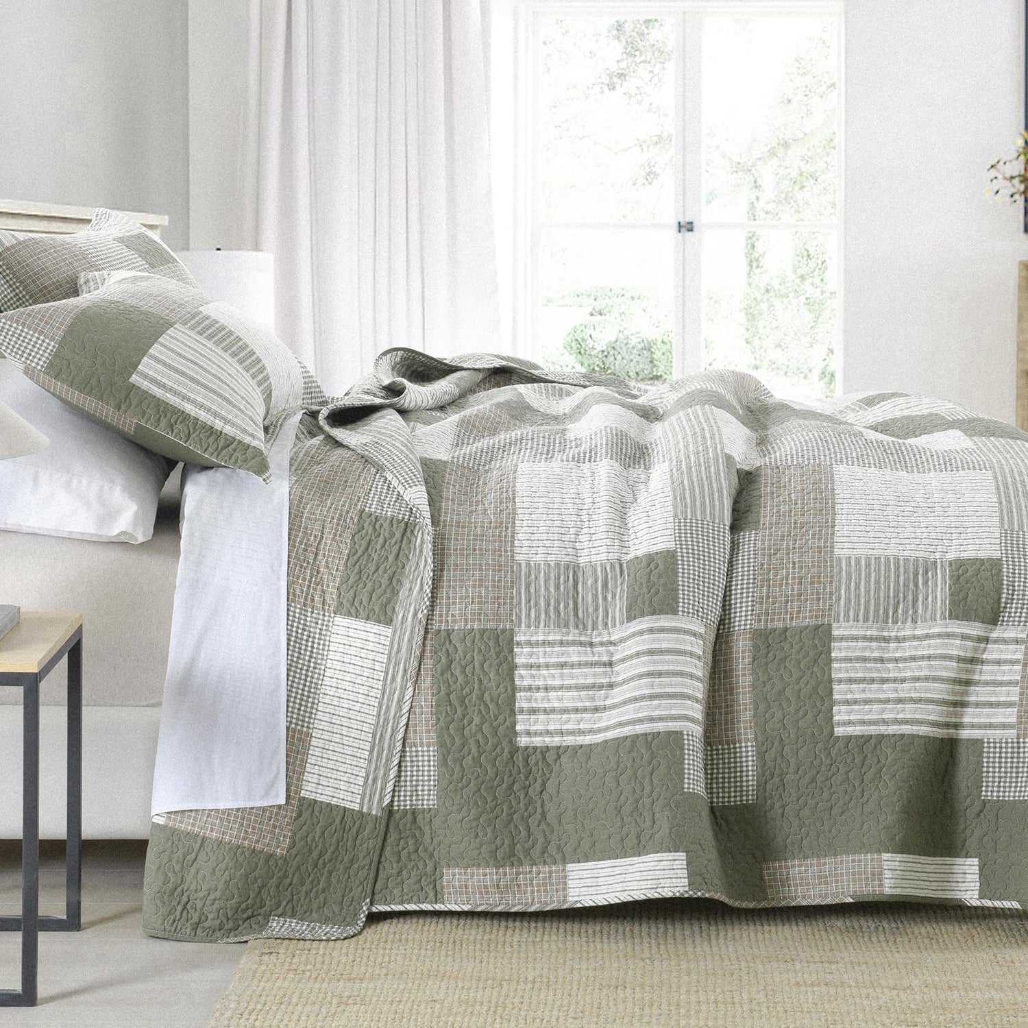 - [Widely Applicable and Decorative] - Classic plaid patchwork quilt with sturdy double stitch work, farmhouse quilt in green and brown. This decorative quilt set can also easily match the decor of your bedroom, living room, master room, guest room, study, dorm and RVs.